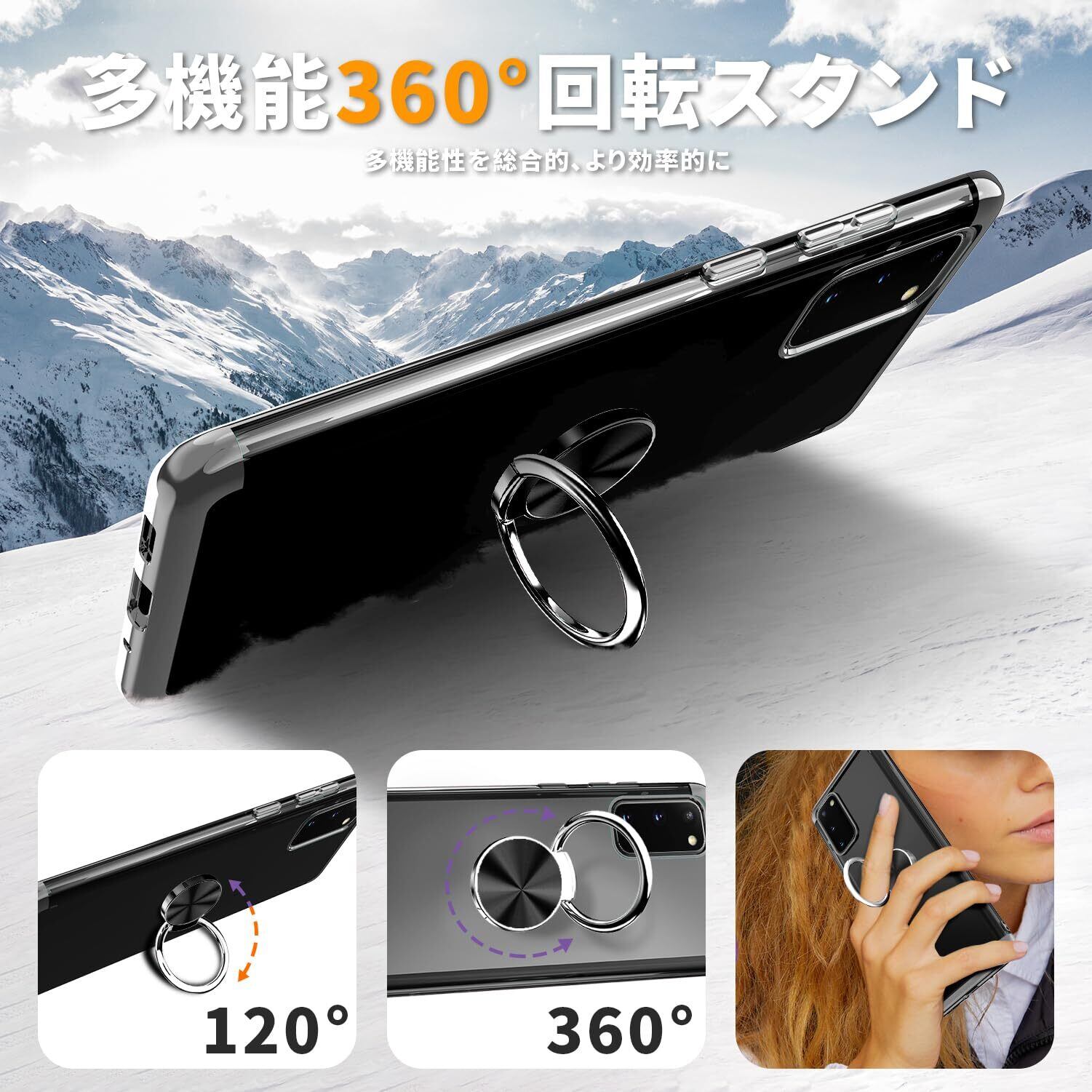 【スタンド機能】360°回転可能リングホルダーです。片手で携帯を操作でき、滑り止め、強奪、落下などのことを防げます。垂直画面で小説を読むことができます、 または、画面全体でビデオを見る。マグネット式車載スマホマウントホルダー に対応でき。