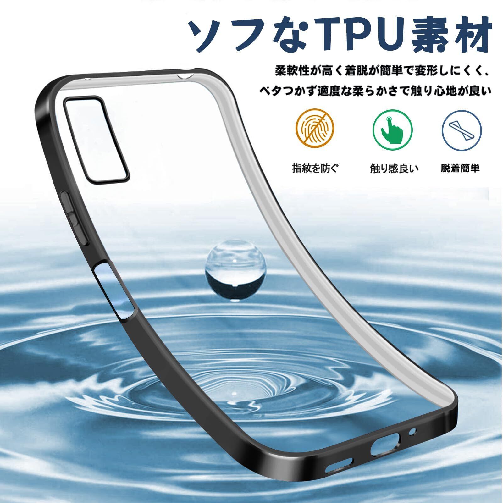 AQUOS wish3 ケース クリア SH-53D A302SH スマホケース 透明 カバー tpu 薄型 背面クリア 黒 シリコン ストラップホール付き 軽量 耐衝撃 ソフト 保護 カバー ブラック