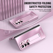 Galaxy Z Fold5 / W24携帯全面保護ケース+強化ガラスフィルム+レンズ保護 ブラケット機能 ワイヤレス充電サポート 手帳型 折り畳み、衝撃吸収 キラキラ 人気カバー 二層構造 スタンド フリップ 財布型、かわいい フリップ 面白い 磁気防止カード 取り外し - ピンク