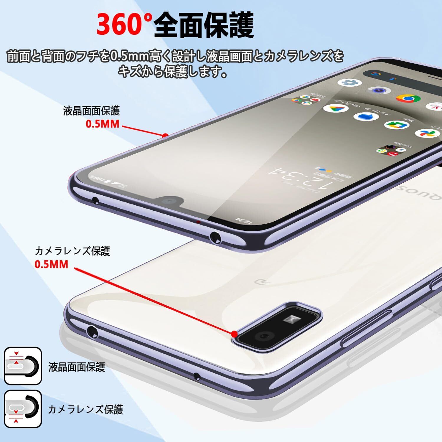 AQUOS wish3 ケース クリア A302SH カバー SH-53D スマホケース 透明 tpu 耐衝撃 ストラップホール スリム ソフト メッキ加工 SHARP アクオス wish3 ケース 薄紫