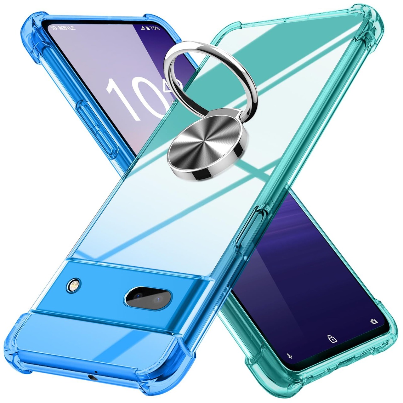 Google Pixel 7A ケース リング付き クリア 薄型 グラデーション色 ケース 軽量 tpu 耐衝撃 スマホケース 透明 米軍MIL規格取得 おしゃれ 黄変防止防塵一体型 人気 車載ホルダー ピクセル 7a 携帯カバー ブルー/緑 MD-SXZH-029-06
