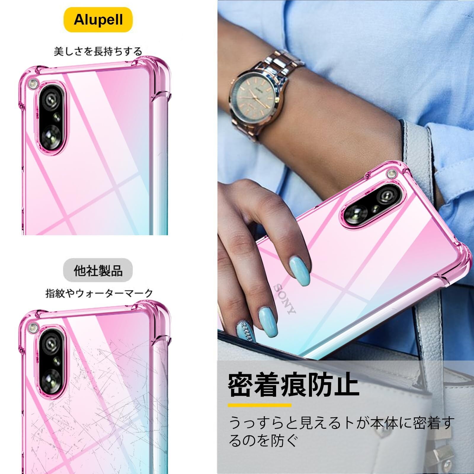 Xperia 5 V ケースクリア TPU 薄型 軽量 グラデーション色 ケース 耐衝撃 米軍MIL規格取得 滑り止め 黄変防止 防塵 一体型 人気 携帯カバー(ピンクグリーン)