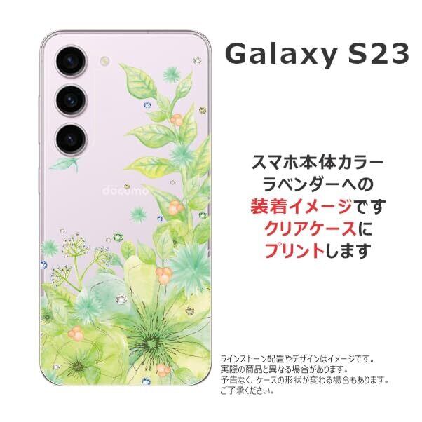 Galaxy S23 SC-51D スマホケース SCG19 ギャラクシーS23 カバー らふら ラインストーン 押し花風 ボタニカルグリーン
