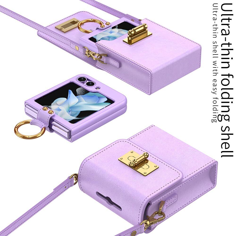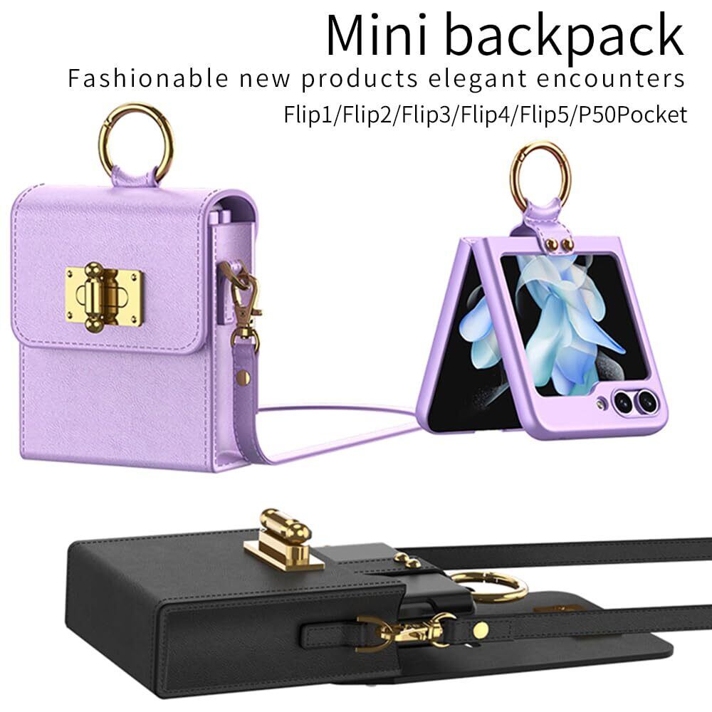 【特価セール】ケース Galaxy Z Flip5手帳型 折り畳み 薄型 超軽量人気 プラスチック かわいい レザー ミニバックパック 指輪、おしゃれ キラキラ スタンド フリップ 磁気防止 カード フリップ 財布型カバー、面白い 取り外し 耐衝撃 ワイヤレス充電サポート つや消しの表面 ストラップ ポケット ハイブリッド メイクアップ、耐汚れ 滑り防止 beautycatcher - 紫 | BOSSO