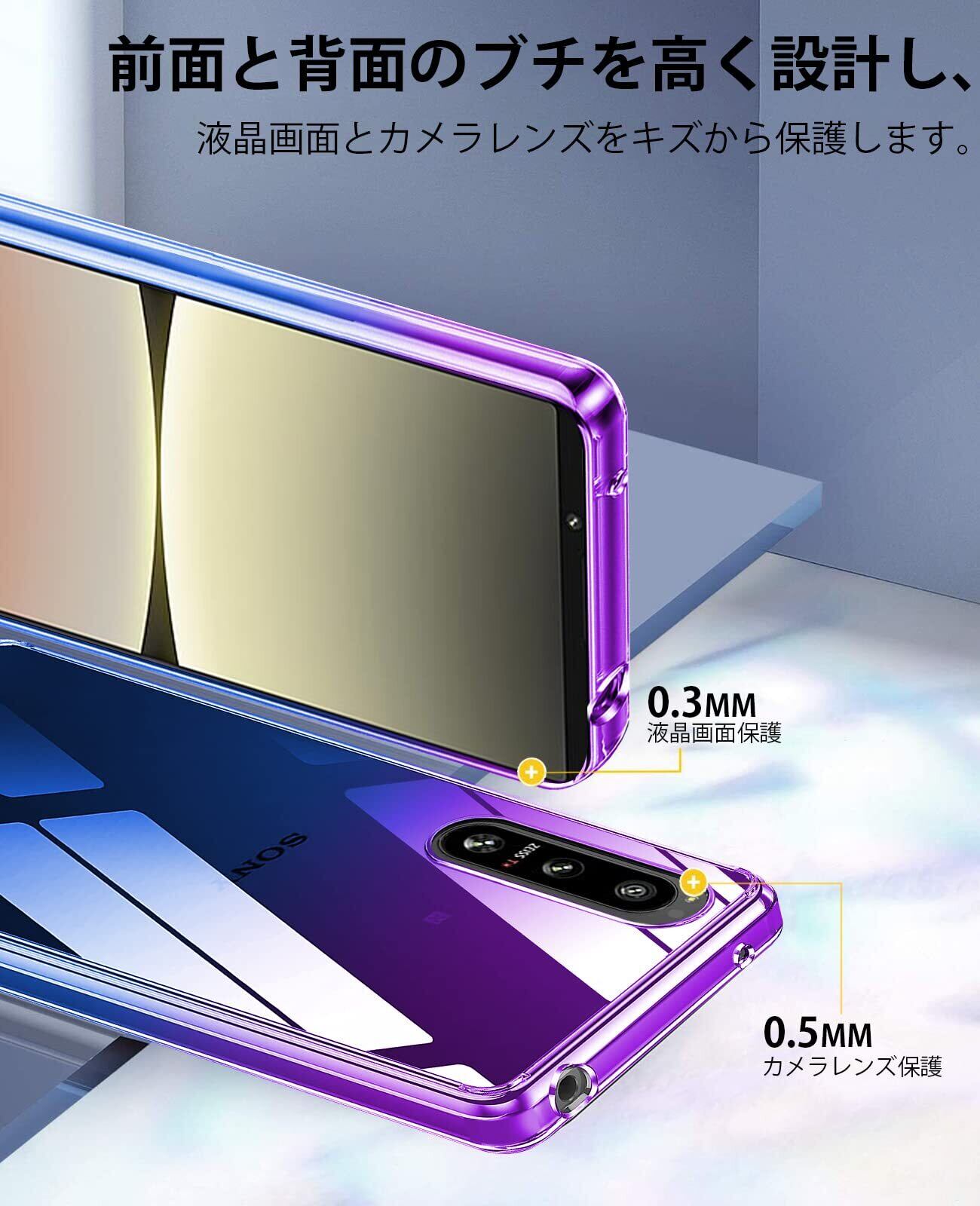 Xperia 5 IV ケース クリア 薄型 TPU 耐衝撃 グラデーション色 ケース 黄変防止 レンズ保護 ストラップホール付き 衝撃吸収 エクスペリア 5IV カバー パープルブルー