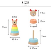 【スタッキングトイ】【リングを重ねよう】【1歳からの積み木】台座にある支柱にドーナツ型のピースを挿してクマさんを完成させましょう。手と目の動きが協応しながら、手先の微細な動きを養い、ブロックの大きさの順番を理解していきます。