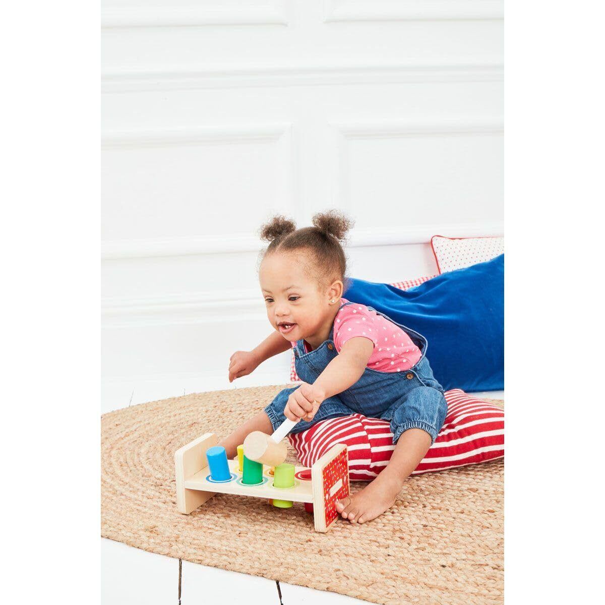 ハンマーを使ってねらい通りに打つことで、手や腕の動きを発達させ、打ち込む動作を繰り返すことで集中力を養います。お誕生日やクリスマス、出産祝いなどの特別なプレゼントにもおすすめです。