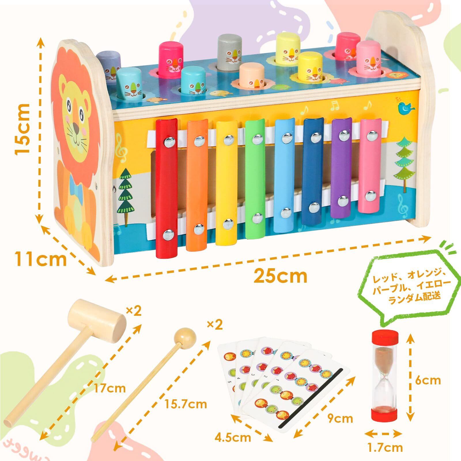 jerryvon モンテッソーリ 玩具 1歳 誕生日プレゼント 3 IN 1 知育玩具 ハンマートイ 鉄琴 木のおもちゃ 誕生日プレゼント 出産祝い 入園お祝い プレゼント 指先訓練 モンテッソーリ教具 1 2 3 4 女の子 プレゼント