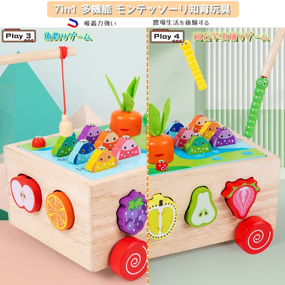 豊富な遊び方:①形合わせ はめ込み;②釣りおもちゃ;③紐通しおもちゃ;④おままごとおもちゃ;⑤野菜を取る;⑥害虫を駆除する;⑦遊べる車。豊富な遊び方で飽きずに興味津々遊べるおもちゃです。