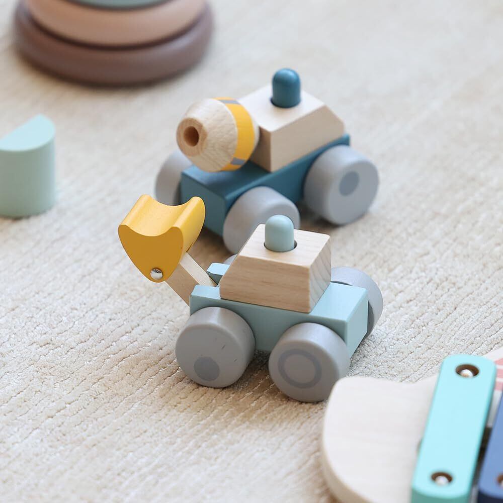 お部屋に散らばっていても可愛く見えちゃう優しい色合いの木製おもちゃ。
