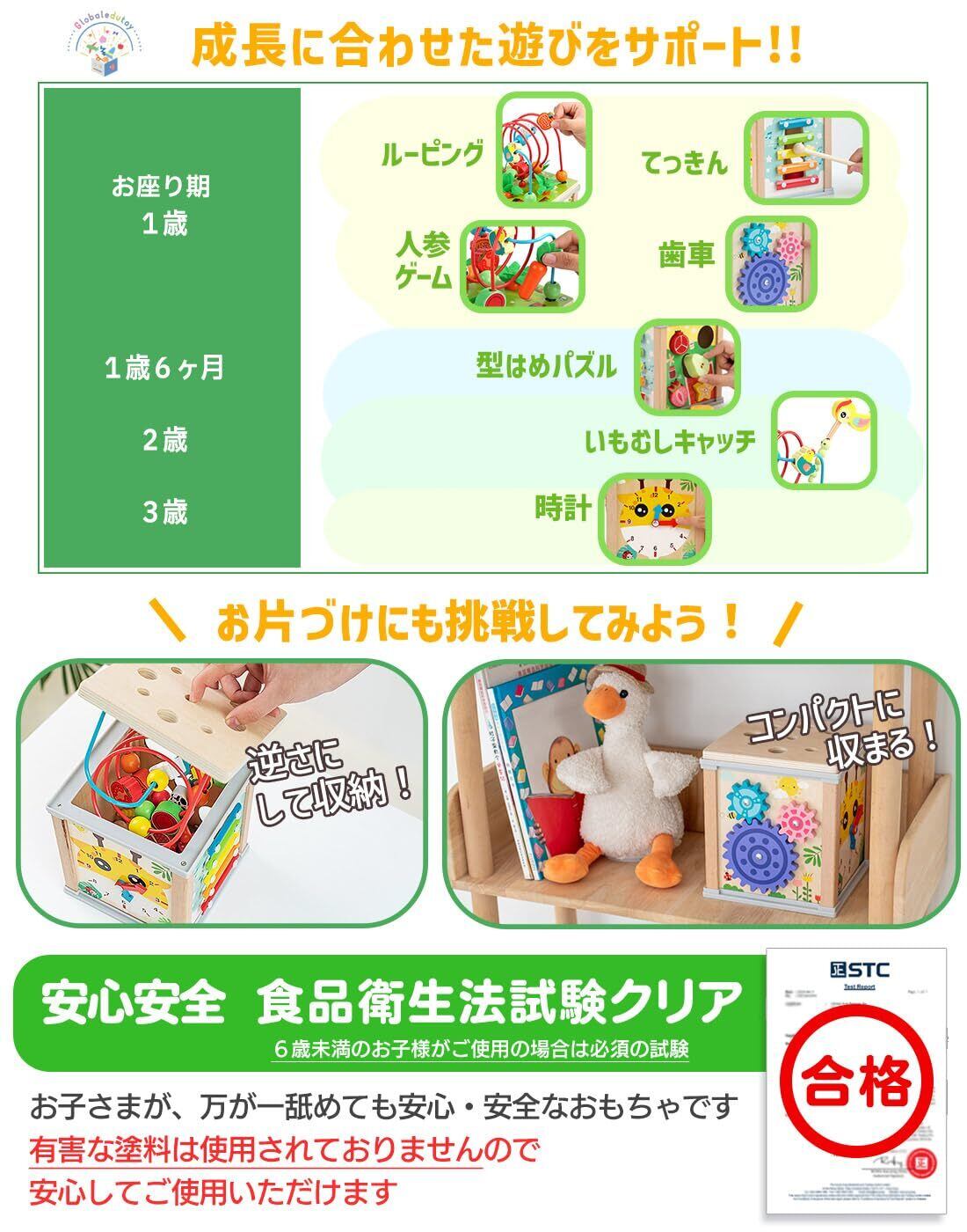 モンテッソーリ【知育のプロ推薦】おもちゃ 赤ちゃん 玩具 0歳 1歳 2歳 誕生日プレゼント 知育玩具【食品衛生法試験合格】7in1 アクティビティキューブ 玩具 木製 ルーピング 型はめ 男の子 女の子 木のおもちゃ 【日本正規品】