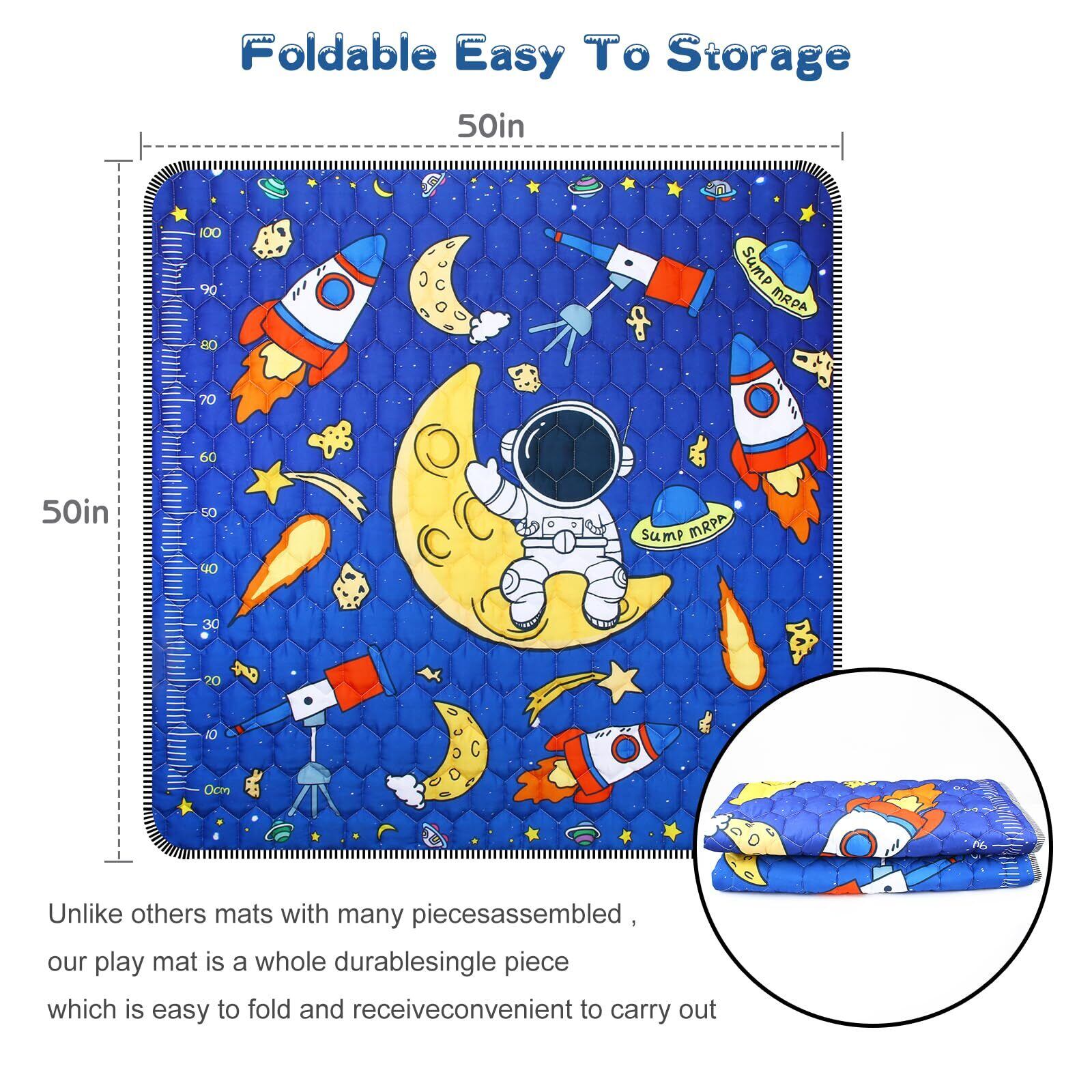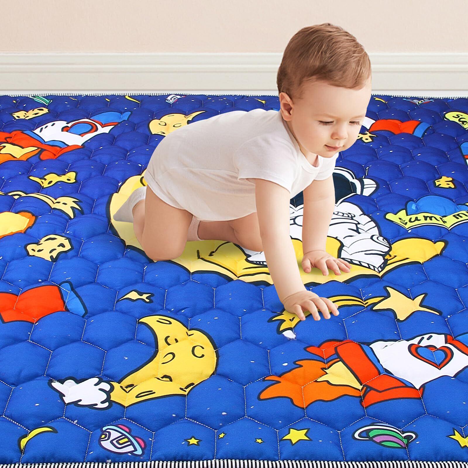 【数量限定】ベビープレイマット ベビーマット 127×127×1.5cm 厚手 プレイマット 赤ちゃん 綿 洗える 滑り止め 防音 子供マット キッズ 遊びマット 衝撃緩和 床暖房対応 出産祝い プレゼント (ブルー) | BOSSO
