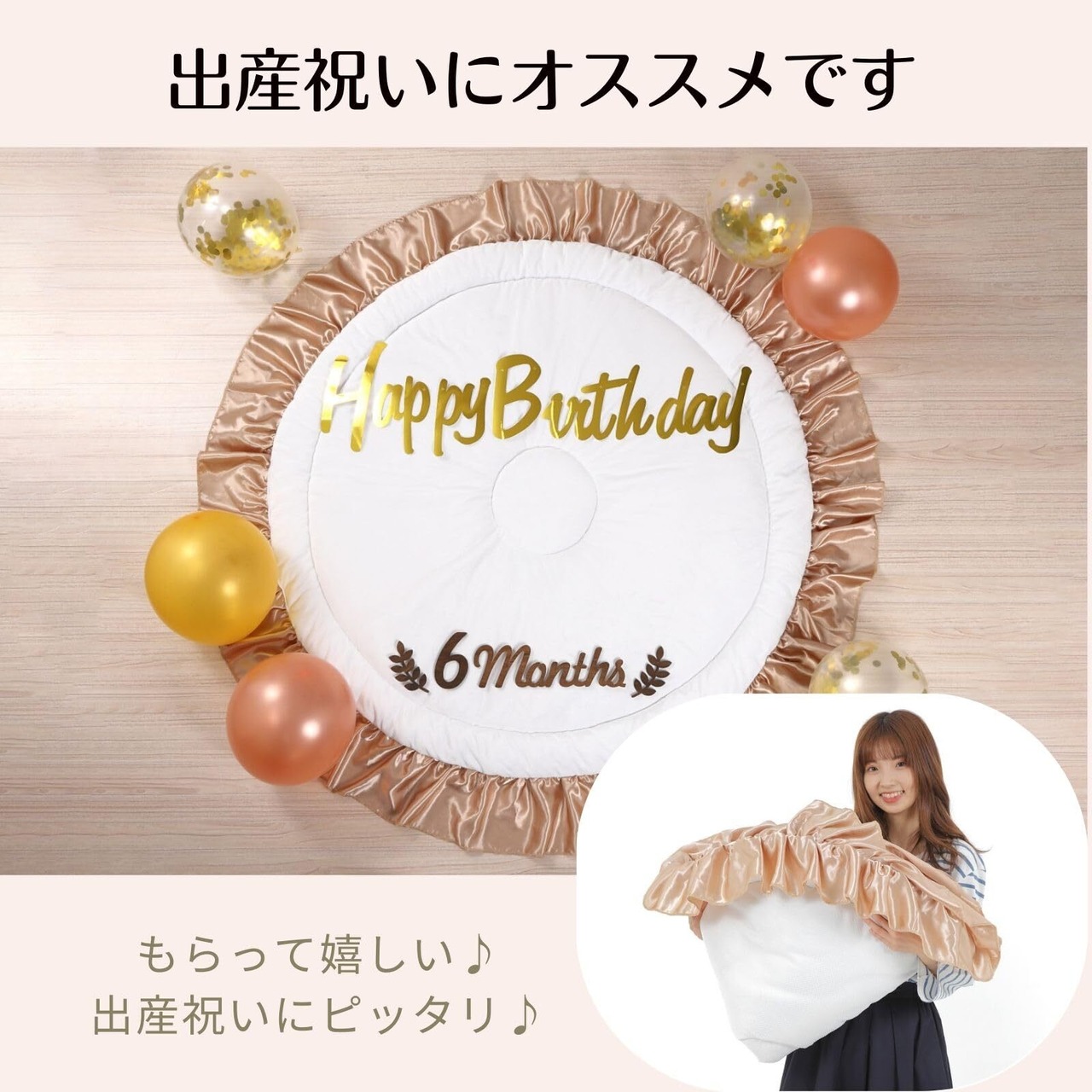 【特価セール】AZUREST ベビーマット 140cm 大型 円形 丸 【成長記録の撮影に】 プレイマット サニーマット 出産祝い 月齢フォト バースデーフォト 丸 洗える 日本企画 ゴールド | BOSSO