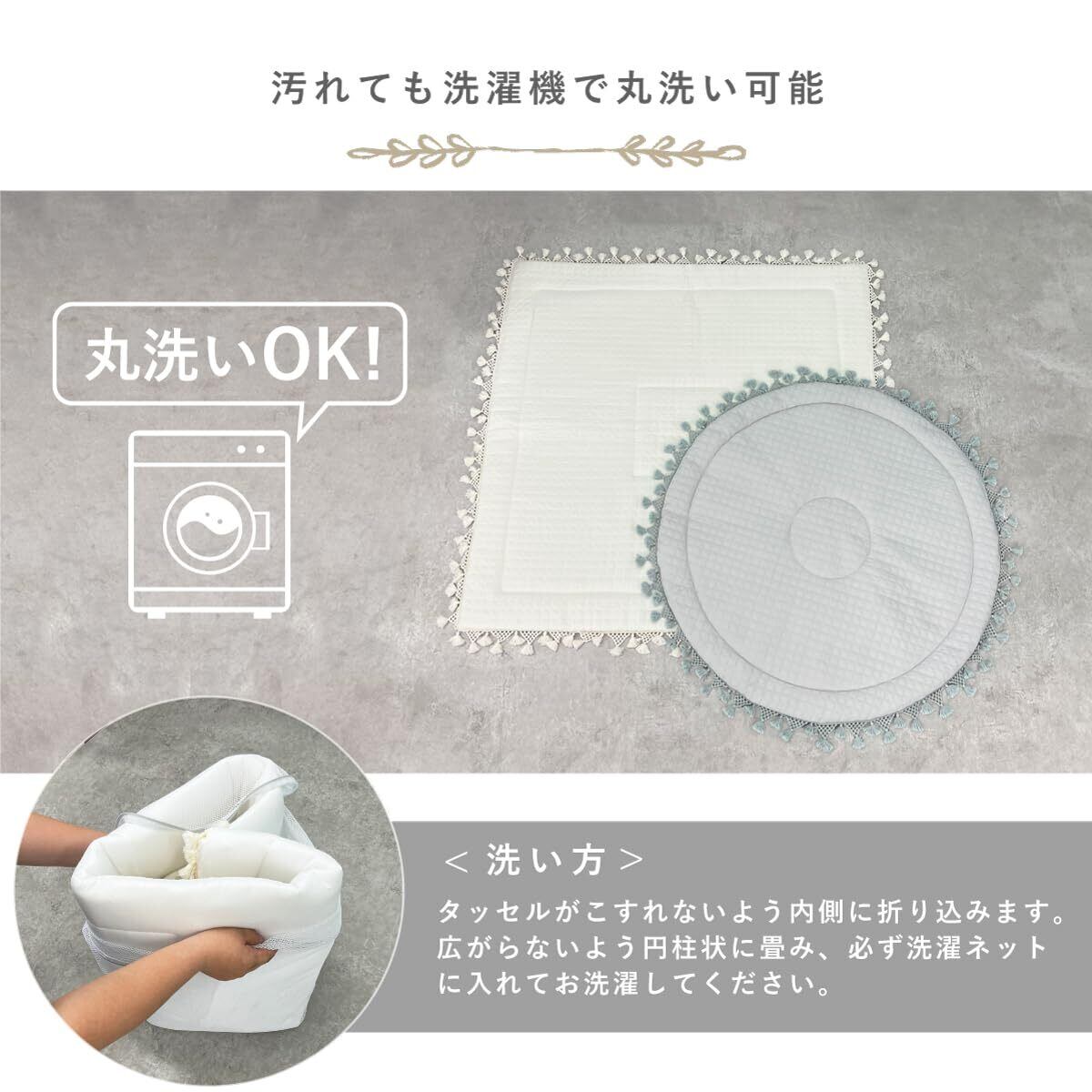 【新生児から使える】丸洗いでき清潔に保てるとてもかわいいイブルのサニーマット。 イブル生地にポコポコ感のかわいいキルティングで、どこでもふわふわ赤ちゃん専用のスペースに。ベビーフォト・お昼寝アート・バースデイフォトなどインスタやSNSでも話題のタッセル付きマットです。