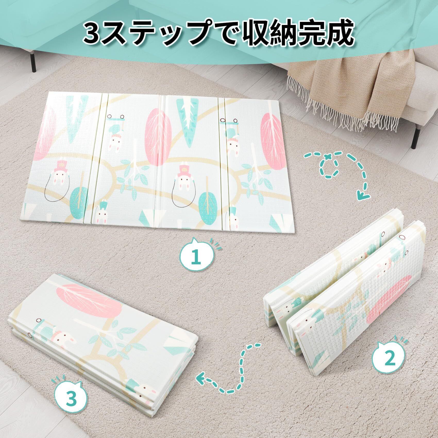 簡単に収納できる:折りたたみ ベビーマットは、使わない時にコンパクトに収納できるため、部屋を広く使いたいときにも便利です。持ち運びも簡単で、ピクニックや旅行先でもお子様の遊び場として活躍します