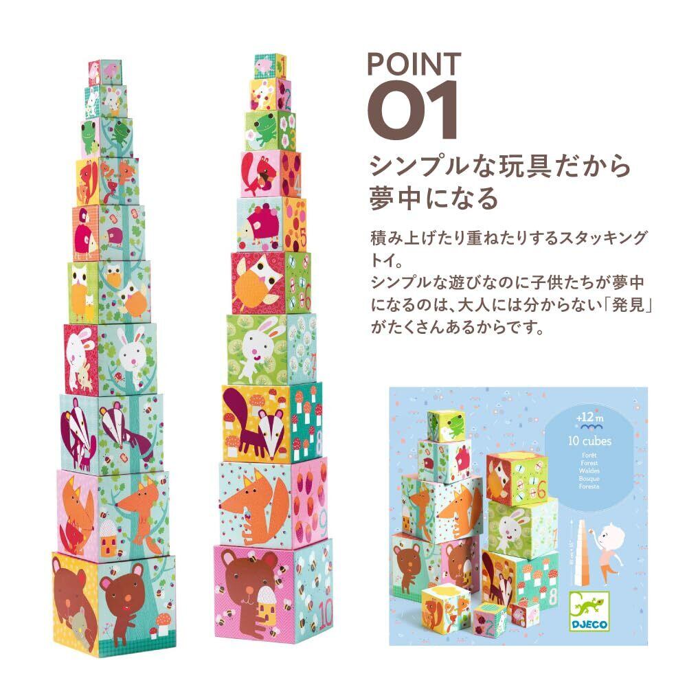 DJECO ジェコ 10フォレスト ブロックス おもちゃ つみき 知育玩具 赤ちゃん ブロック 積み上げ 大きい スタッキング 知育 重ねる 紙製 入れ子 丈夫 モンテッソーリ 1歳 クリスマス (DJ08507)