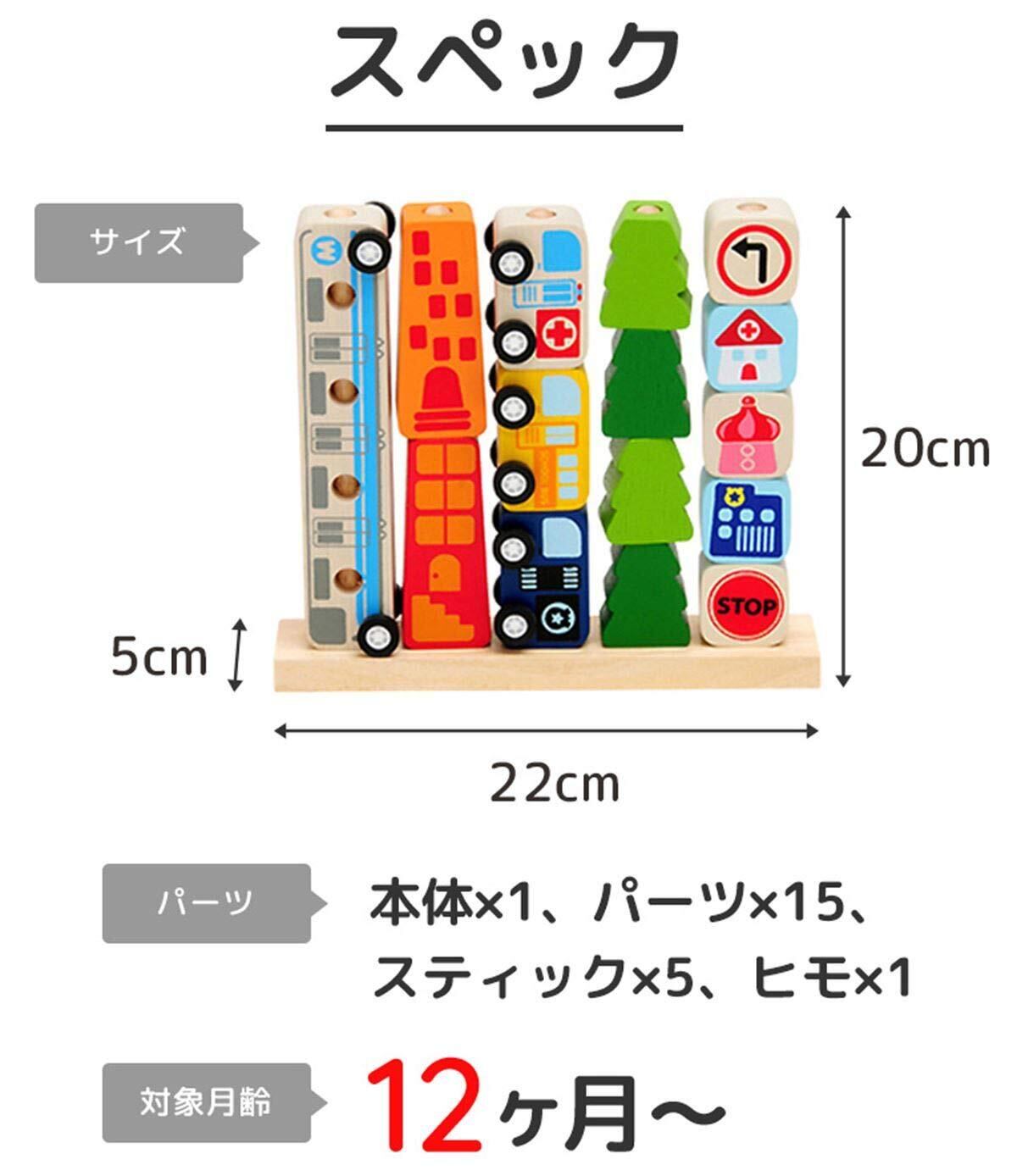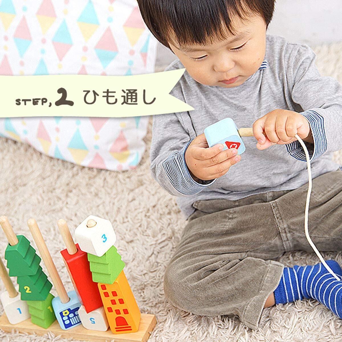 本体にパーツをはめ込む指先トレーニングをしながら、お片づけの練習にもピッタリな木のおもちゃです。重量:682g 【セット内容】本体×1、パーツ×15、スティック×5、紐通し用スティック×1 【対象年齢】12ヶ月~