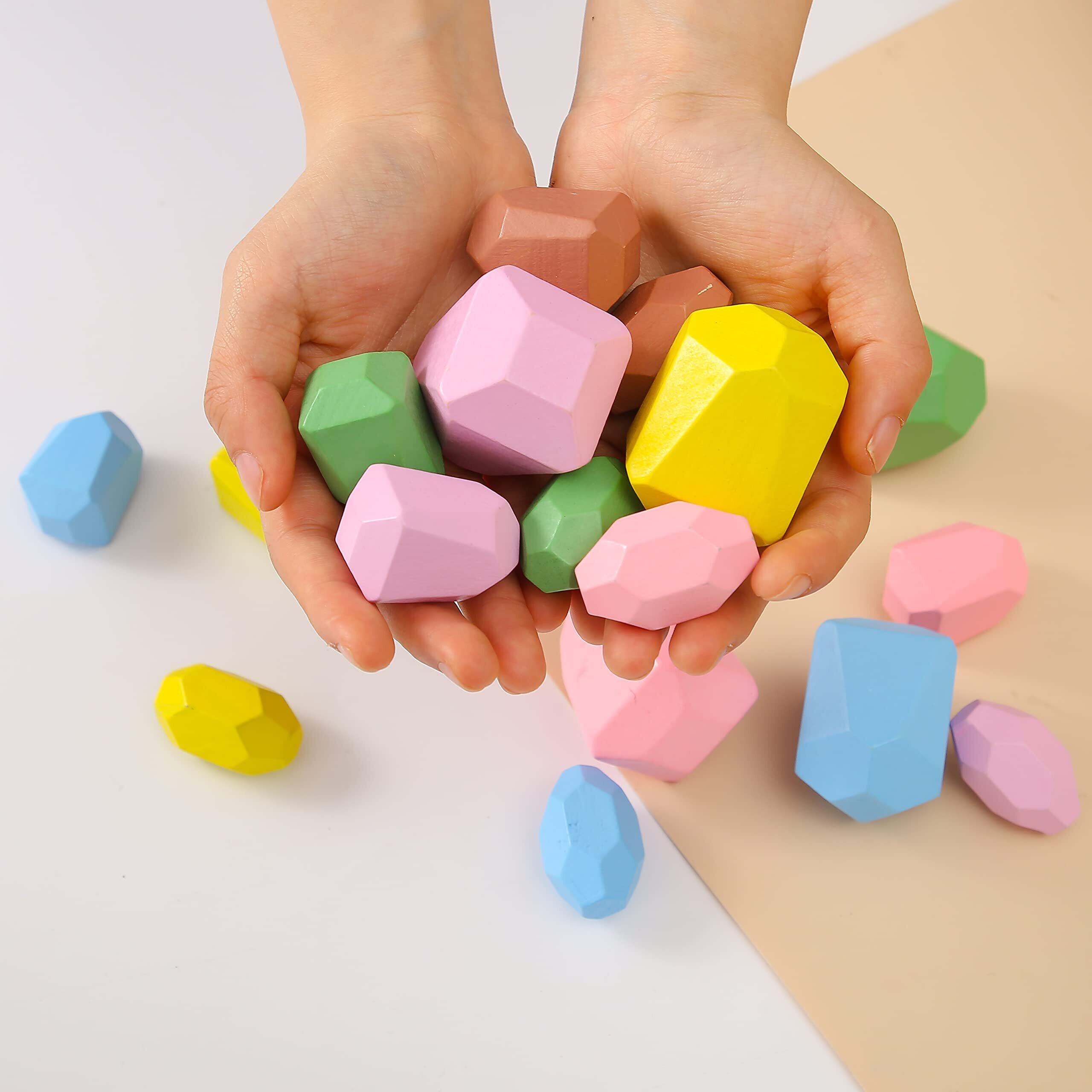 Promise Babe 積み木 ブロック 18個 大きさ違う キャンデー系 カラフル 木製 バランスゲーム 知育玩具 色認識 指先トレーニング 早期開発 赤ちゃん 子供 大人も使える 誕生日プレゼント