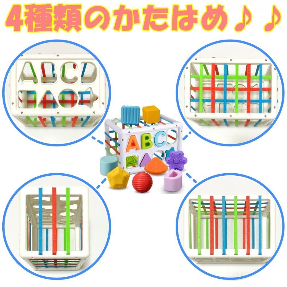 ゴム紐と形に合わせる2種類のあそびができるかたはめおもちゃです。