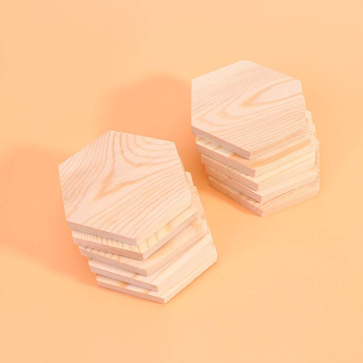 六角形の木製ブロック未完成の木の切り欠き図形10ピース1×10Cmの木のスライス片名のタグ