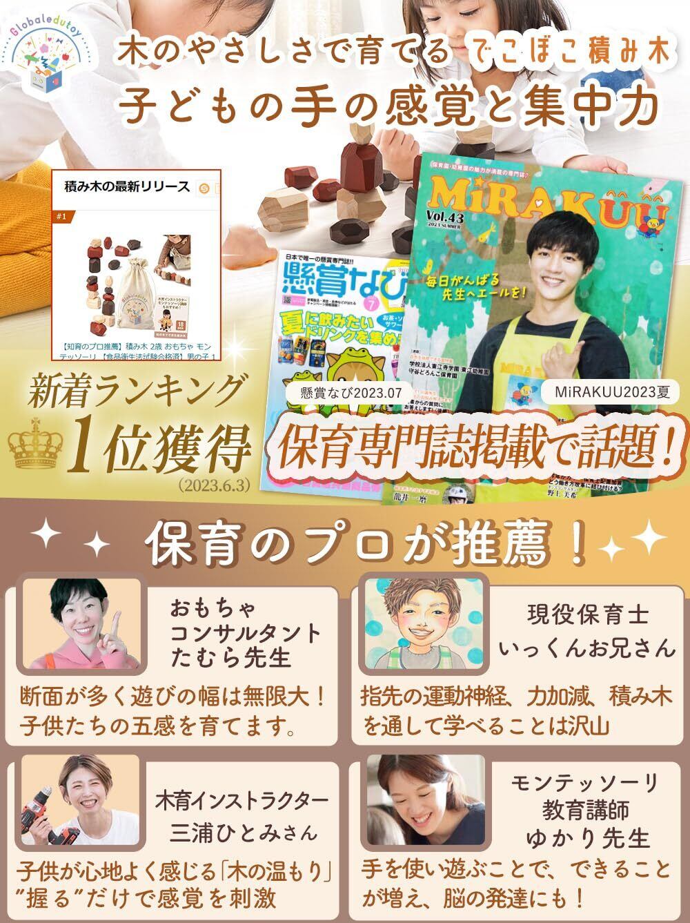積み木 モンテッソーリ【知育のプロ推薦】1歳 2歳 おもちゃ【食品衛生法試験合格済】男の子 木のおもちゃ 知育玩具 つみき ブロック18個 赤ちゃん 子供プレゼント でこぼこ Globaledutoy