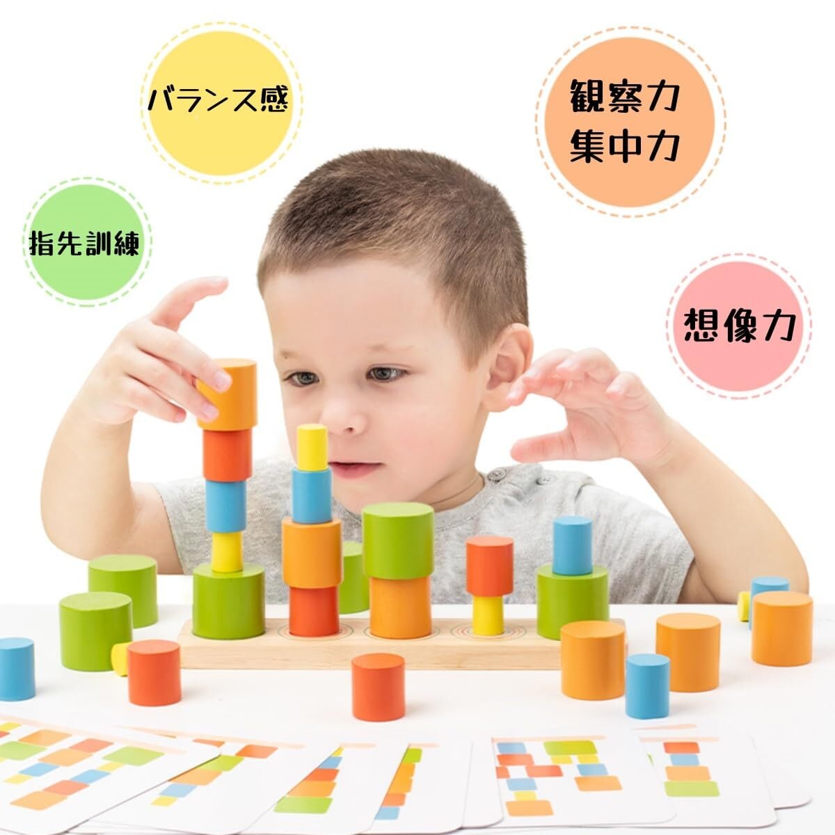 Bajoy 積み木 幼児知育玩具 早期開発 脳トレ 観察力 空間認識 数字認知 バランス感覚など多機能モンテッソーリ玩具2 3 4 歳知育教具 入園祝い 子供用 女の子男の子誕生日 クリスマス プレゼント
