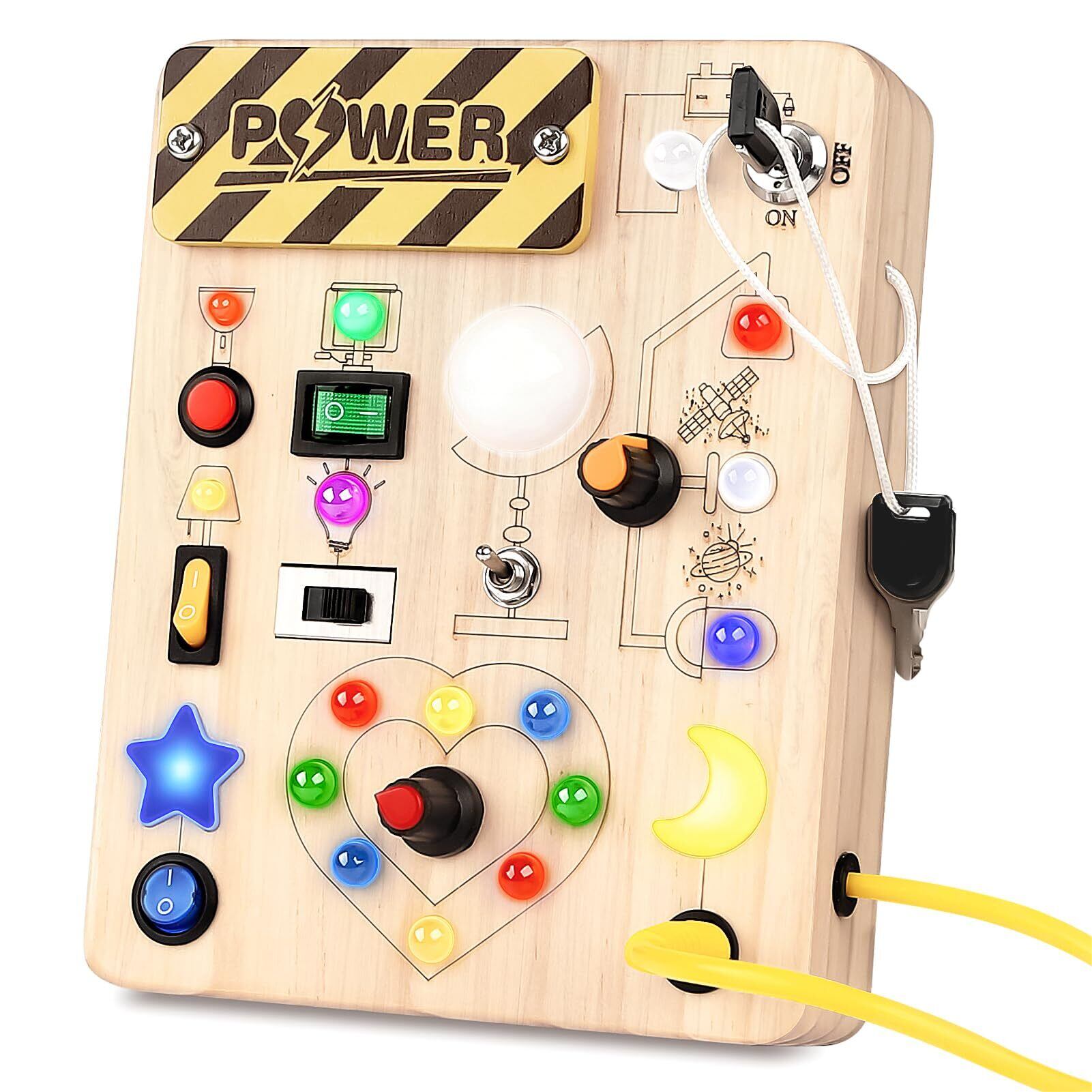 Joyreal モンテッソーリ ビジーボード - LED 知育玩具 1 2 3歳誕生日プレゼント 玩具 男の子 女の子 木のおもちゃ 赤ちゃんおもちゃ 子供のおもちゃ 指先の知育 早期開発