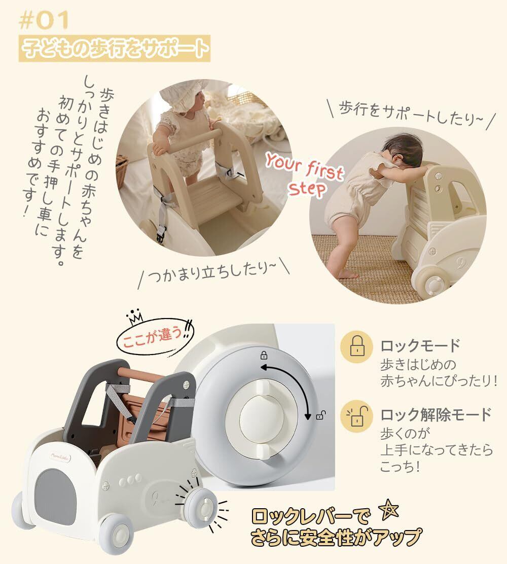 MomnLittle 手押し車 乗用玩具 知育玩具 おもちゃ 乗り物 赤ちゃん つかまり立ち 押し車 ベビーウォーカー 男の子 女の子 玩具 足けり ベビー 出産祝い ギフト (アイボリー)