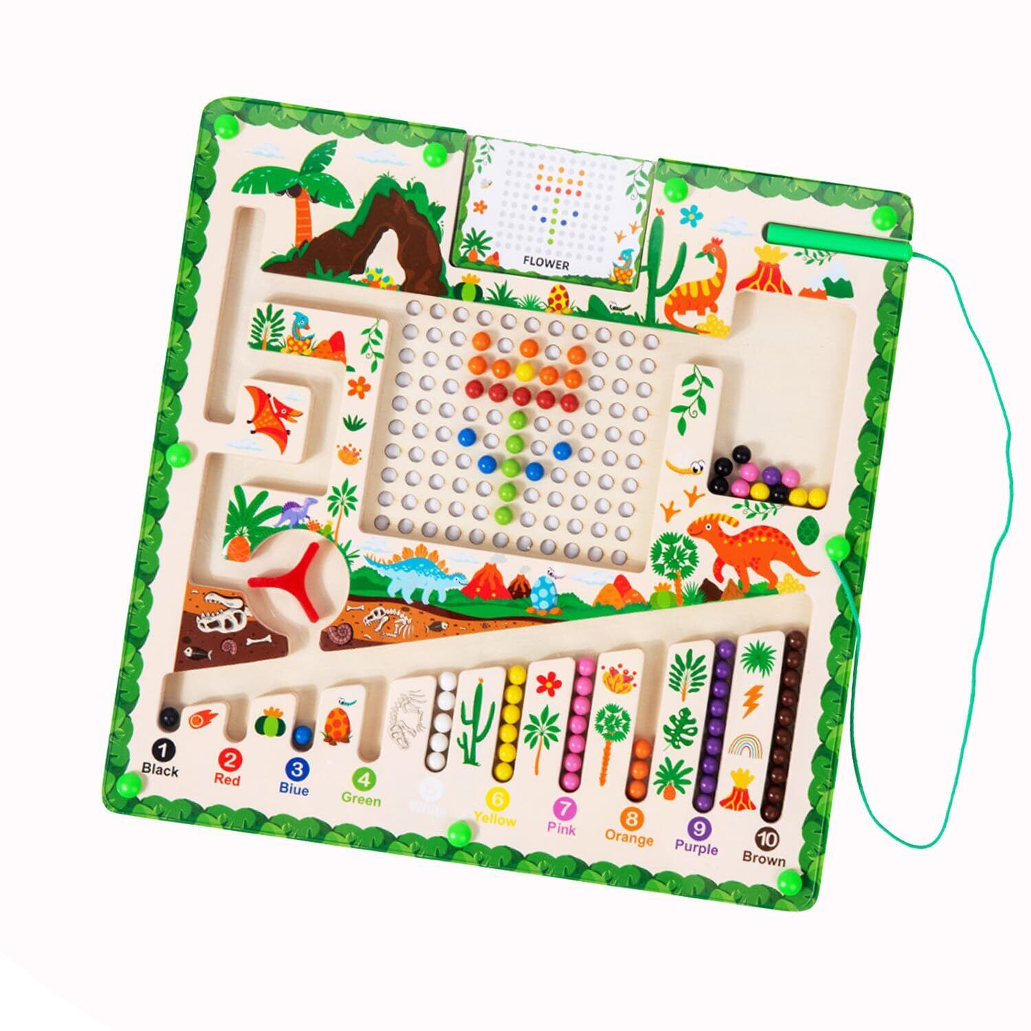 【2022最新】子供向け磁気迷路 モンテッソーリおもちゃのマグネットボードパズル 恐竜子供木製の磁気迷路おもちゃ 知育玩具 手目協調性能力の育成、集中力の向上、3歳以上の幼児と子供に適した理想的なおもちゃと誕生日プレゼント | BOSSO