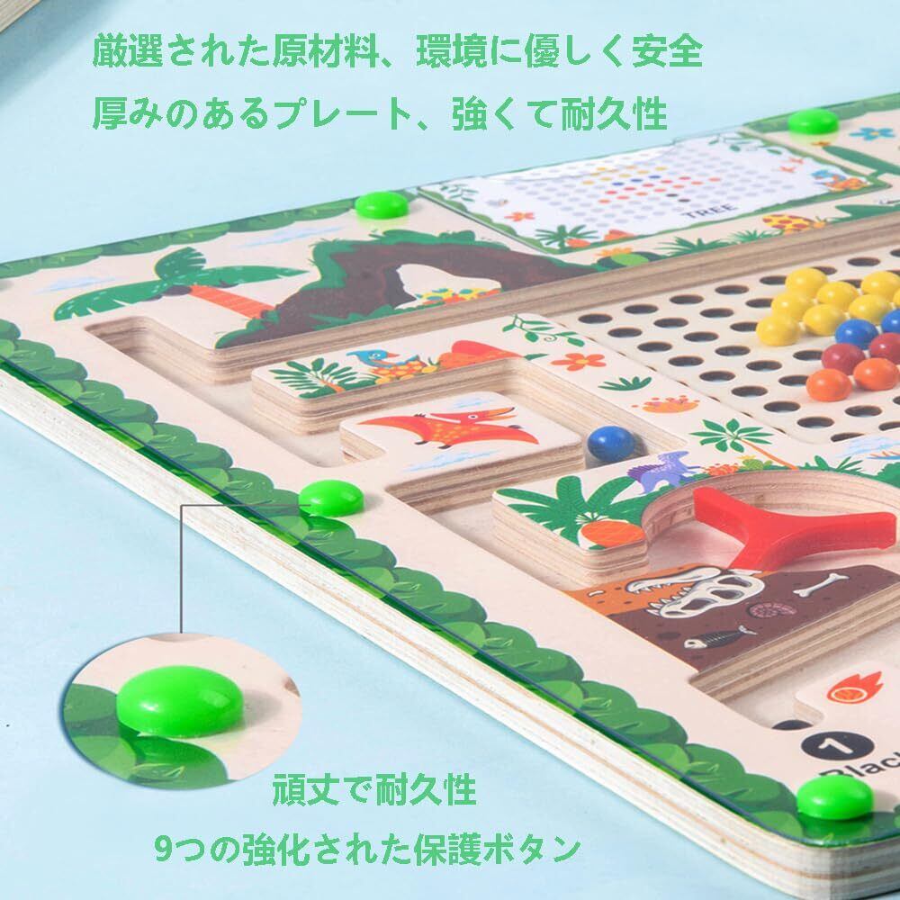 子供向け磁気迷路 モンテッソーリおもちゃのマグネットボードパズル 恐竜子供木製の磁気迷路おもちゃ 知育玩具 手目協調性能力の育成、集中力の向上、3歳以上の幼児と子供に適した理想的なおもちゃと誕生日プレゼント