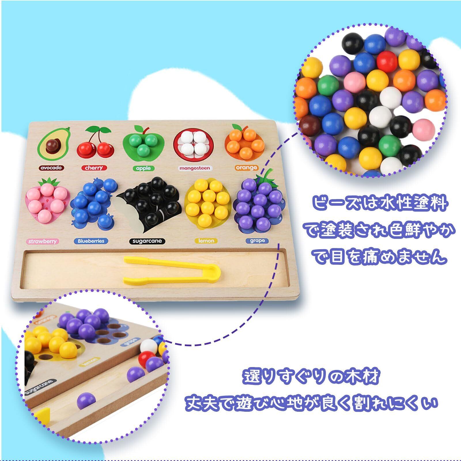 モンテッソーリ玩具 知育玩具 2 3 4 5 歳 木のおもちゃ 果物の色選別ビーズ 指先訓練 手と目の協調と細かい運動能力 おもちゃ 女の子 男の子 プレゼント