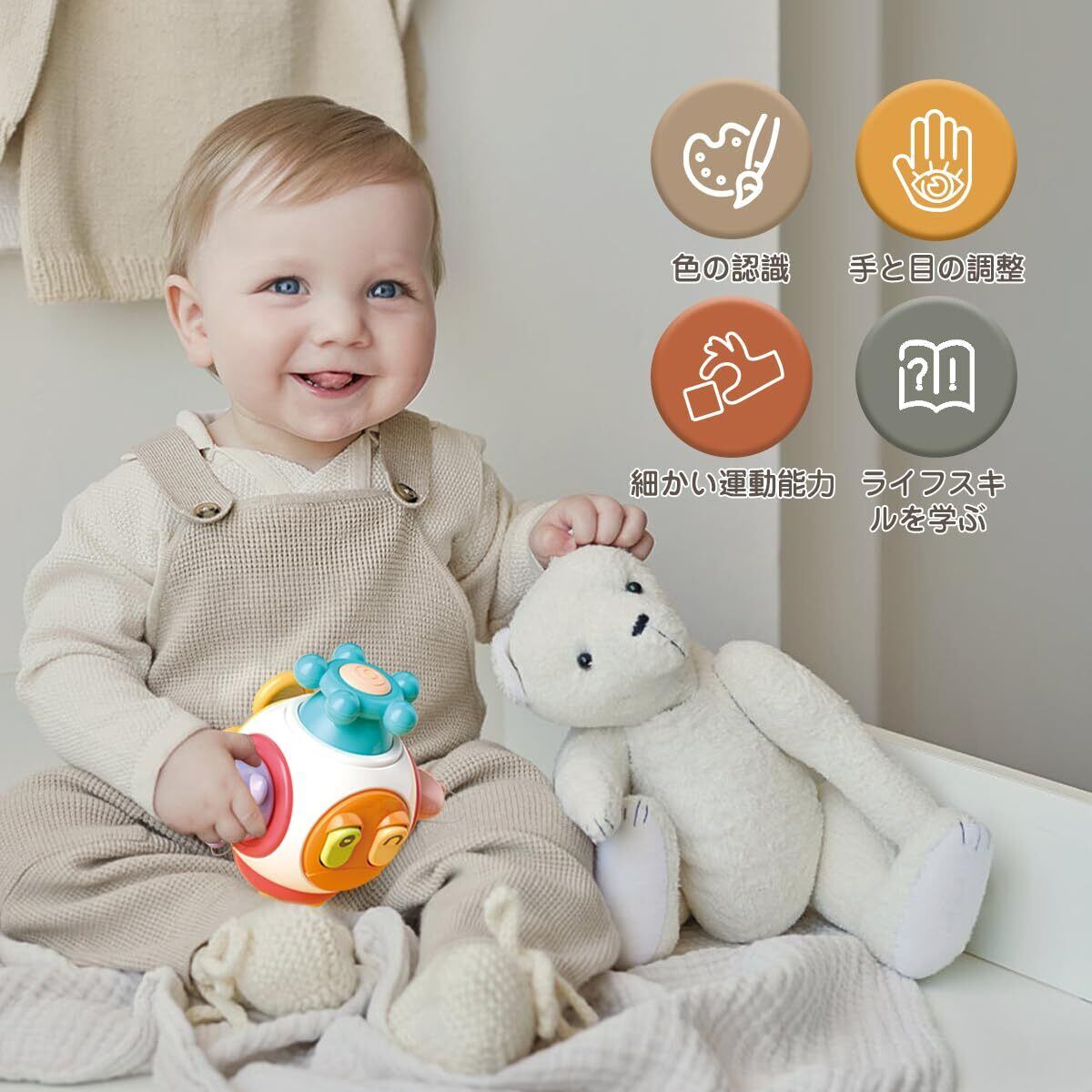 【知育玩具】赤ちゃん用知育玩具は、握る、挿入する、引っ張る、ひねる、回転させる、押すなどの動作を通じて、赤ちゃんの指の器用さと細かい運動能力を向上させます。お子様の好奇心と想像力を刺激し、探索と発見を助けます。 1歳から使えるモンテッソーリのおもちゃです。