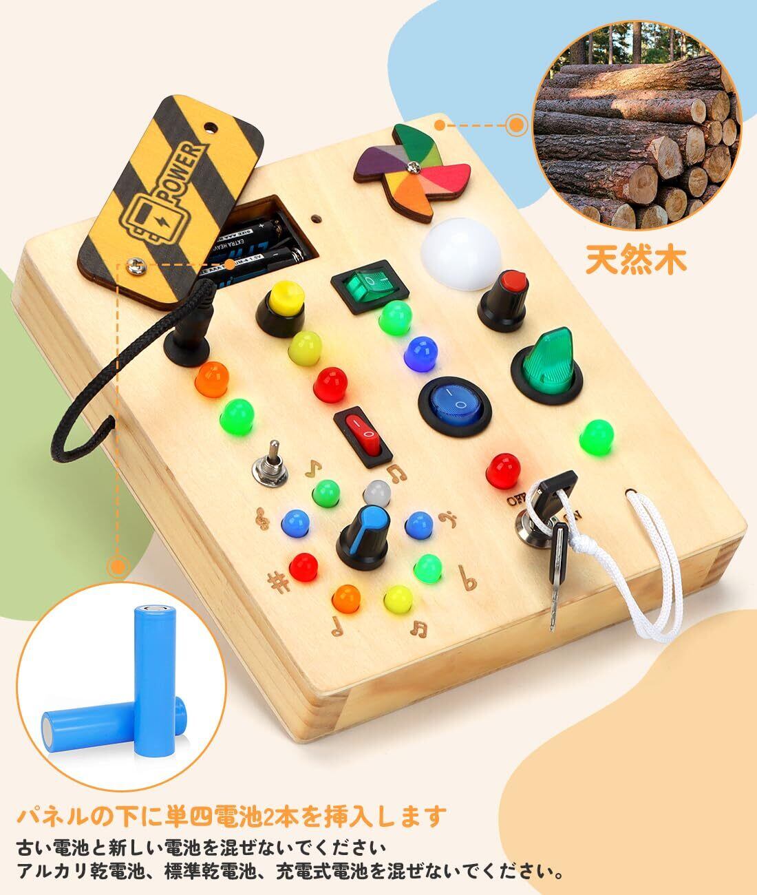 YTCYKJ 木製ビジーボード おもちゃ ビジーボード モンテッソーリおもちゃ スイッチ ビジー ボード 幼児 ライト スイッチ ボタン付き キッズアクティビティボード 幼児感覚おもちゃ 3歳以上の子供向け インタラクティブ早期教育 教育 学習 旅行 おもちゃ 男の子用 女の子用 バッテリ別売(風車)