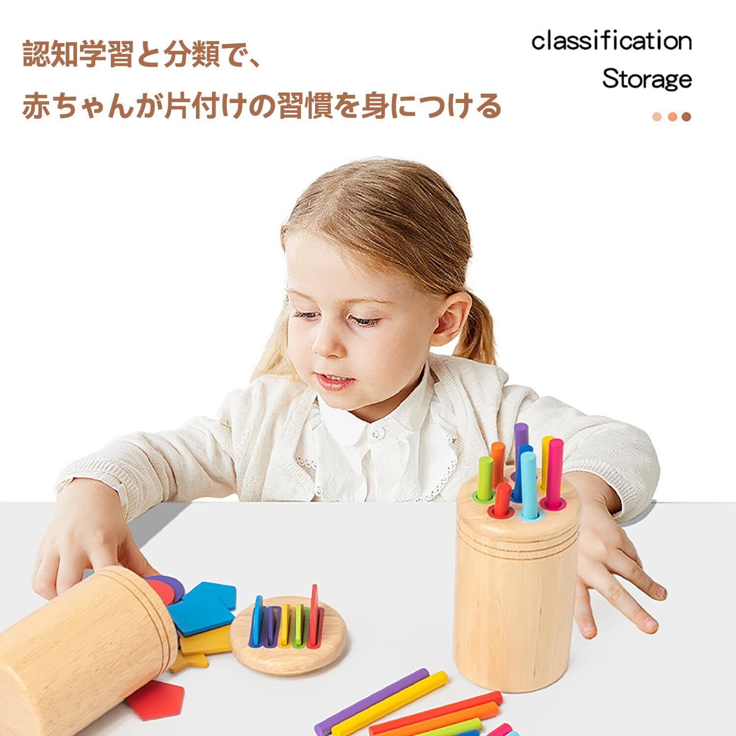 【2種類のフタで遊び方自由】このモンテッソーリ知育玩具は,スティック型のフタとディスク型のフタを自由に交換できる2in1デザイン。異なる遊び方で、お子様の思考力や分類能力を伸ばし、長く飽きずに楽しめます。