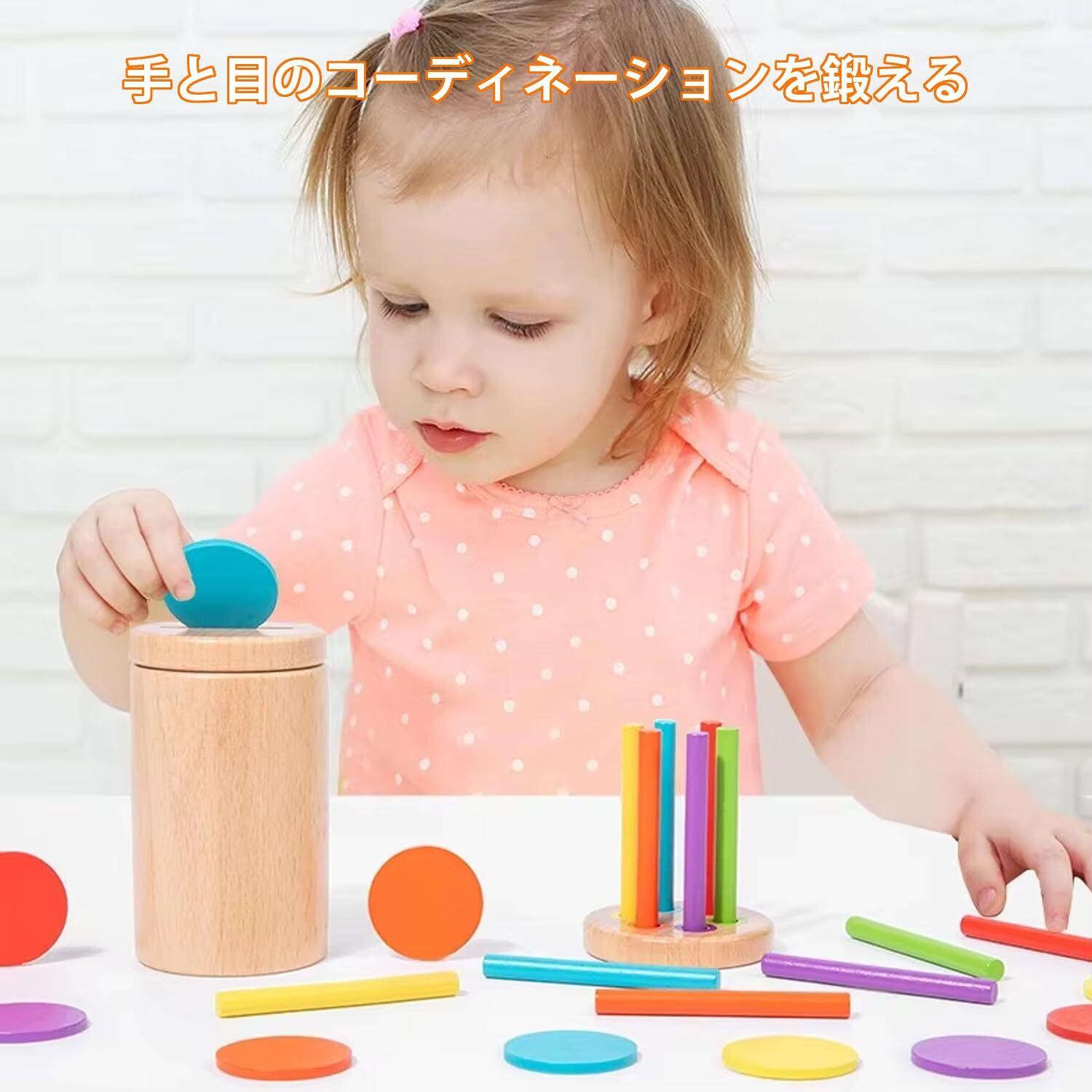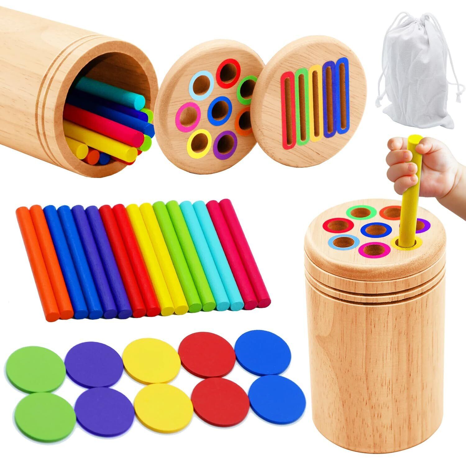 【特価セール】Geerow モンテッソーリ 玩具 知育玩具 1 2 3 4歳 木のおもちゃ 色の分類 誕生日プレゼント 認知発達と手と目の調整を促進 幼児向けの楽しくインタラクティブな学習ツール 教育玩具 誕生日プレゼント 早期発達ギフト 男の子 女の子 幼児 丸い棒、丸いピース 2つが1つになったもの | BOSSO