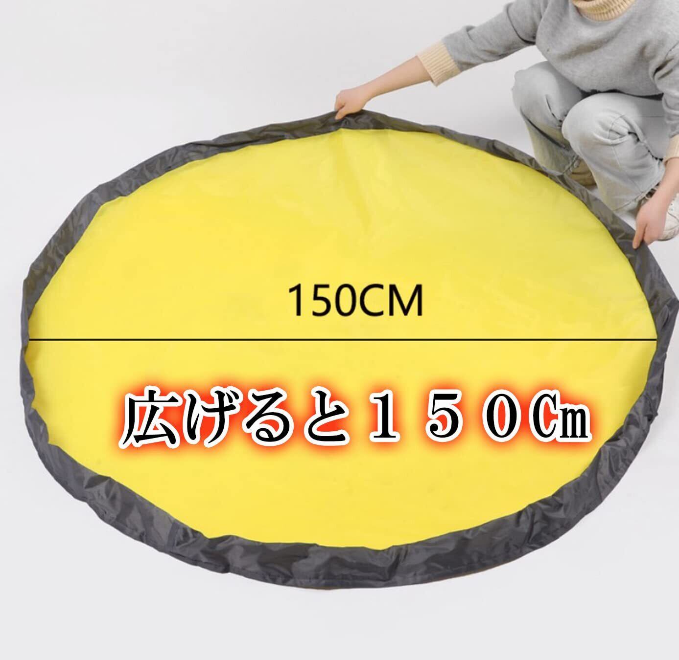 【ヘルスリフェ】 おもちゃ収納バッグ おもちゃ箱 プレイマット 遊び場 直径1.5m ふた付き 大容量 ブラック