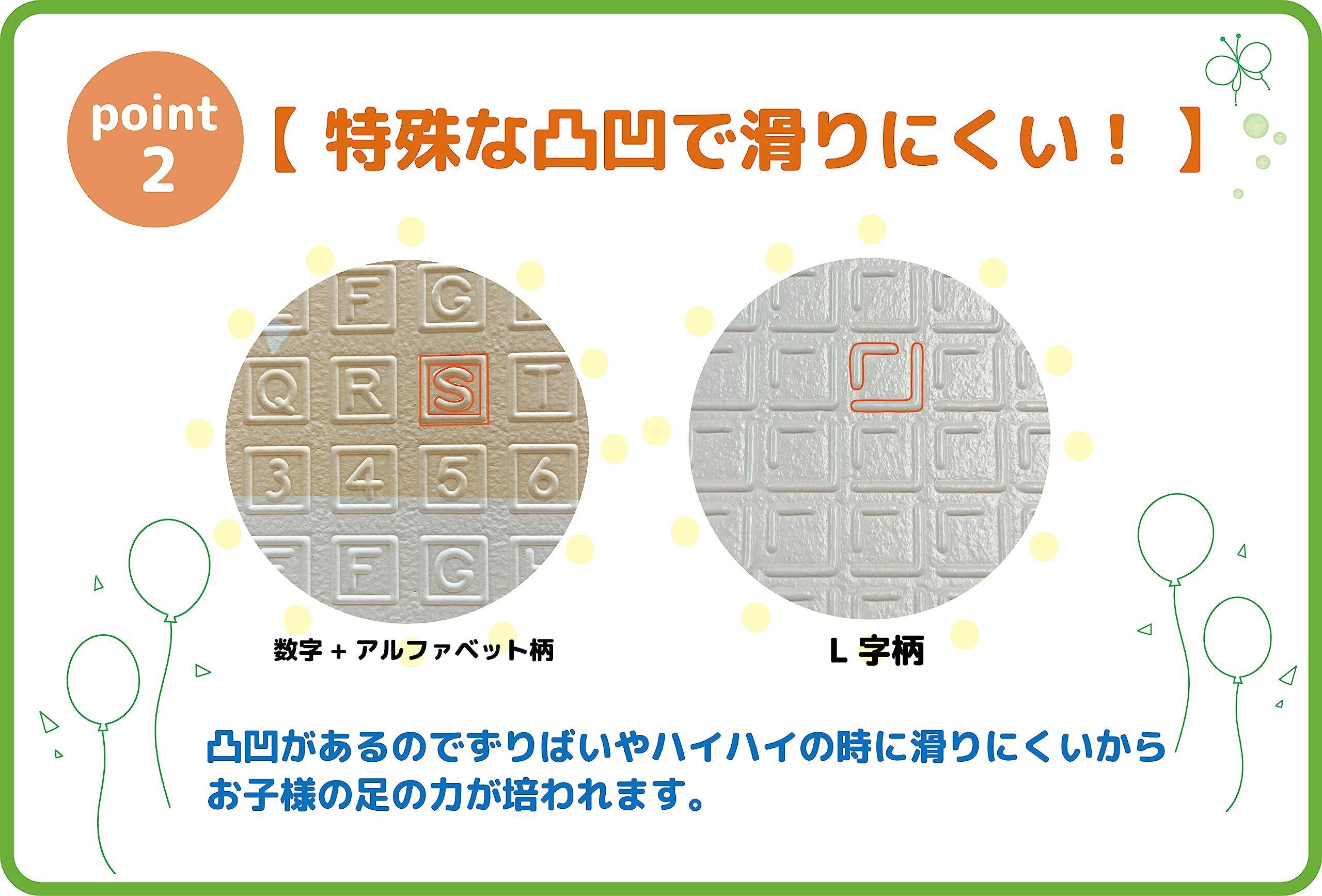 【使用上の注意】●マットの上での激しい運動や走ったりしないでください。マットがずれる可能性がございます。●お子様だけで遊ばせないでください。大人の目が届く場所でご使用ください。●長時間モノを置くと跡が残る場合がございます。●火や熱源の側には置かないでください。●ふちの部分は布ですので、長時間汚れを放置しますと、シミやカビの原因になります。