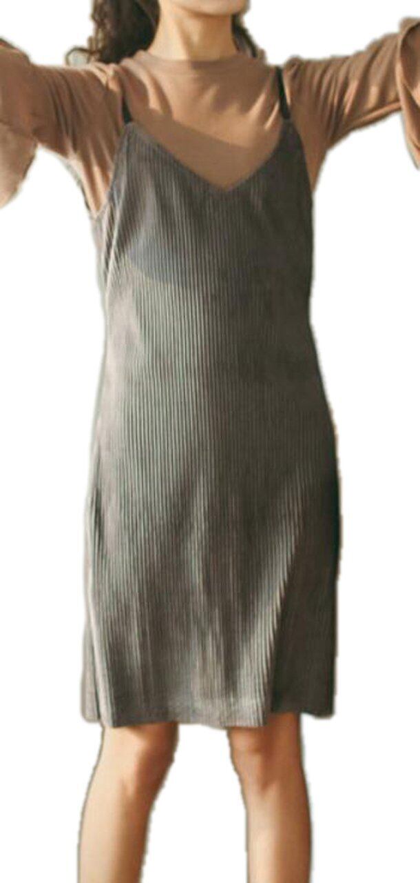 [エンジェルムーン] キャミソールワンピース ジャンパースカート ストライプ 重ね着 ひざ丈 レディース