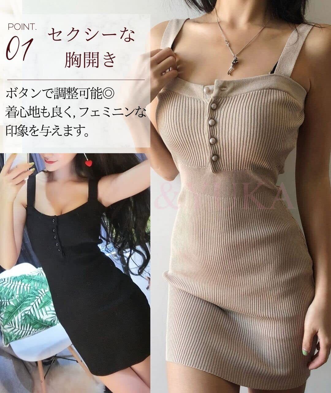 【2022最新】[ココアンドユカ] リブ ニット ノースリーブ フロント ボタン タイト ボディコン ミニ ワンピース 胸元 開き セクシー かわいい レディース ルームウェア ワンピ | BOSSO