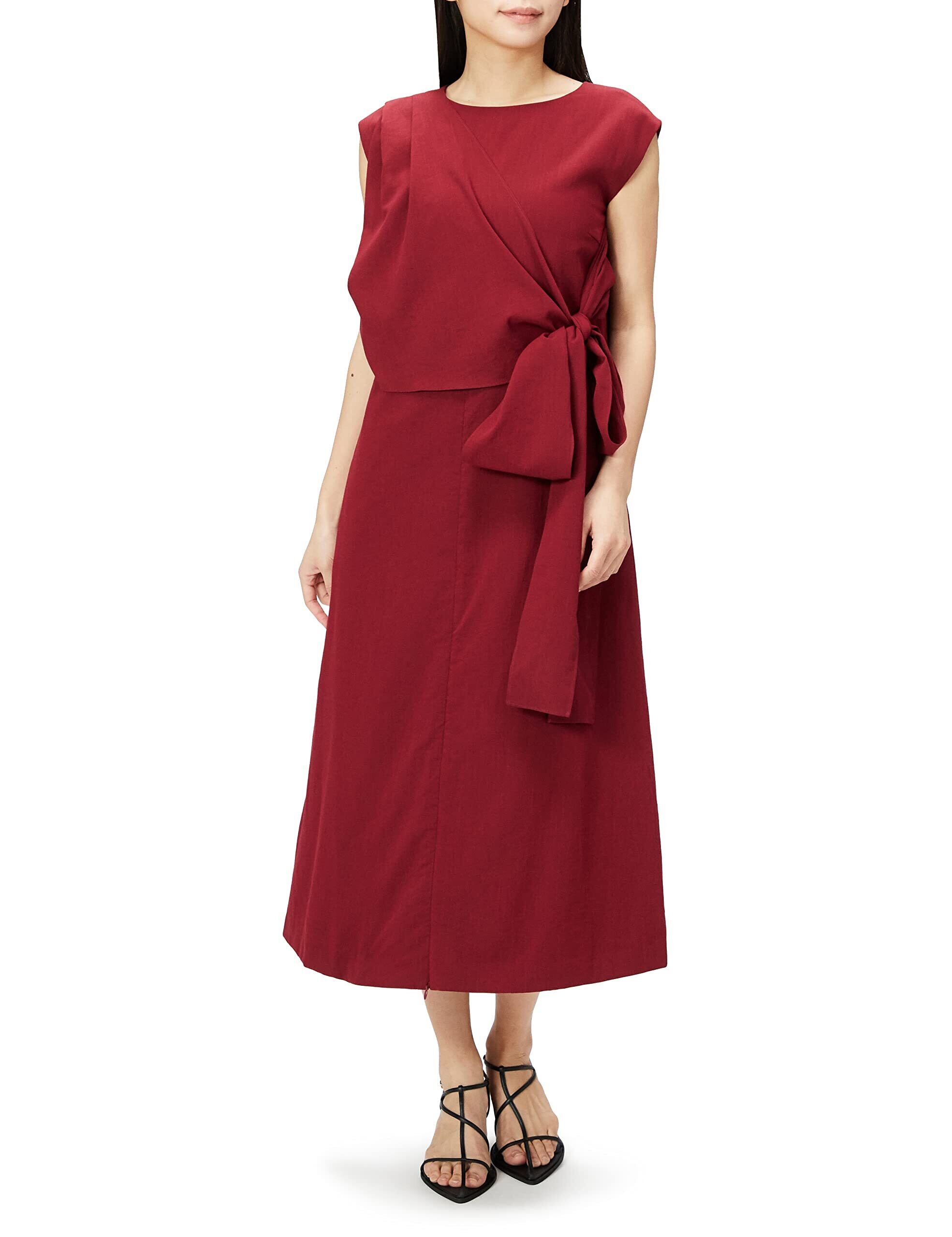 アシンメトリーについたリボンを結ぶ、モダンなデザインのワンピース。前身頃ファスナーの開閉を調節し、ボトムやレギンスとレイヤードスタイルも楽しめます。