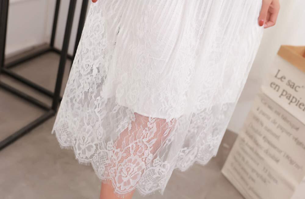 膝下丈スカートの総レースがエレガントで上品な大人の女性を演出。