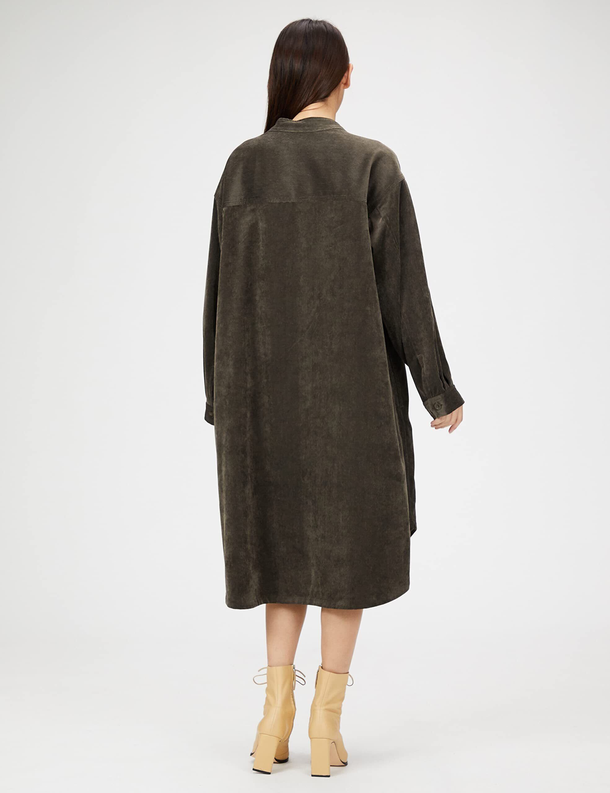 【絶妙なオーバーサイズで仕上げたスタンドカラーシャツワンピース】