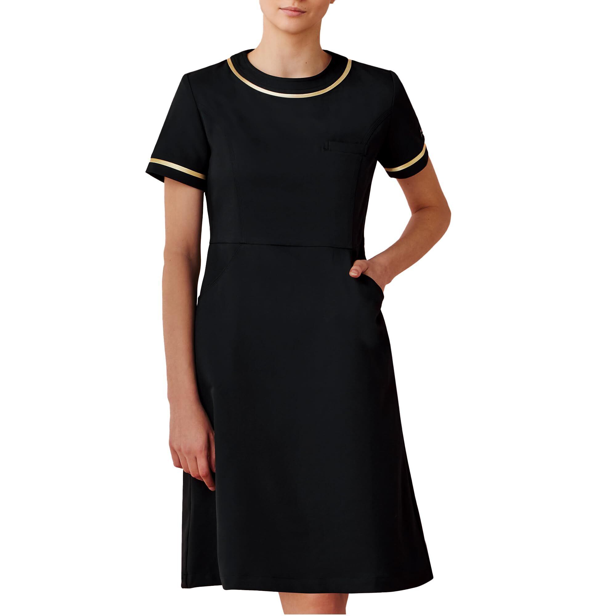 [ミッシェルクラン] ワンピース 女性用 スタイルアップ 脚長 ファスナー 動きやすい [透防止/制電/ストレッチ/制菌] 美容 病院 メディカル クリニック 受付 歯科 制服 MK0020 MK-0020-C-10(ブラック)
