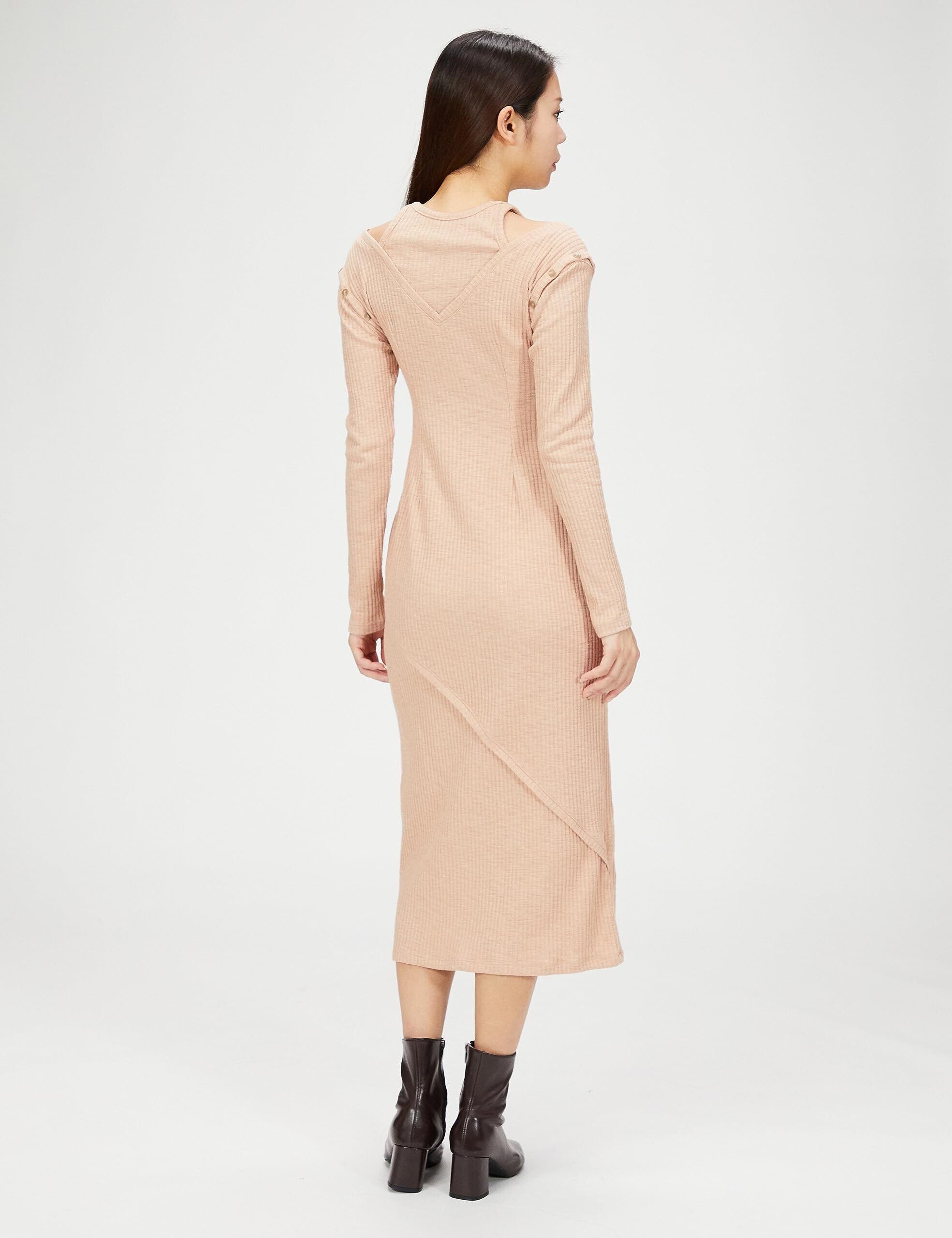 アメスリのタンクトップワンピースに、カーディガンをレイヤードしているようなデザイン性の高い一枚。やや長く設定したスリーブは、クシュっとさせてこなれた雰囲気をプラス。バックのウエストにはダーツを施しているので、ウエストラインをすっきり見せてくれます。フロントのスリットで脚さばきが良く、歩く姿も美しく見せてくれます。ボタンで取り外しが可能の袖は、ノースリーブワンピースにも変化するので、シーズン長く活躍します。