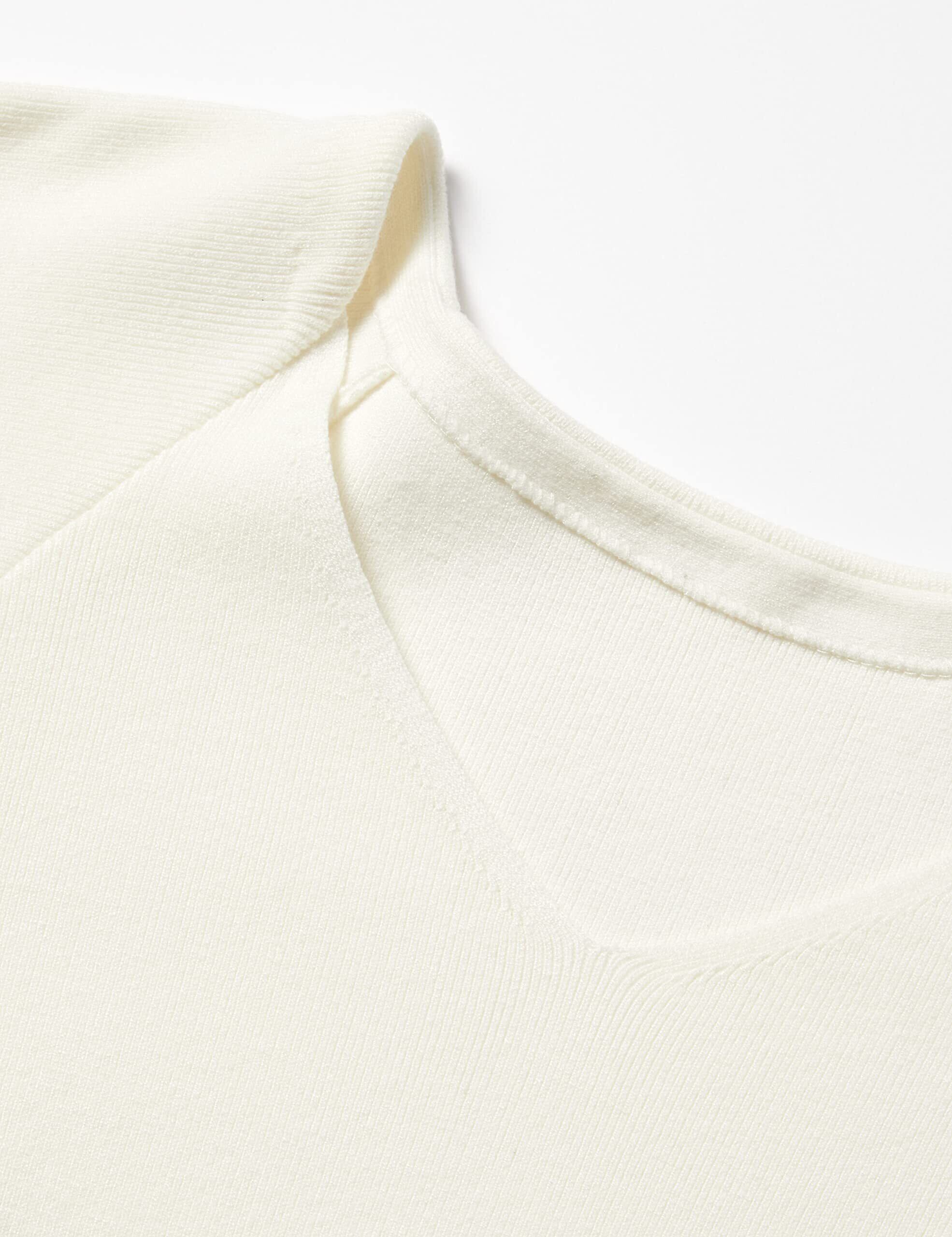 Vネックラインのバックスタイルはボートネックなので、前後どちらでも着用できるのも嬉しいポイントです。