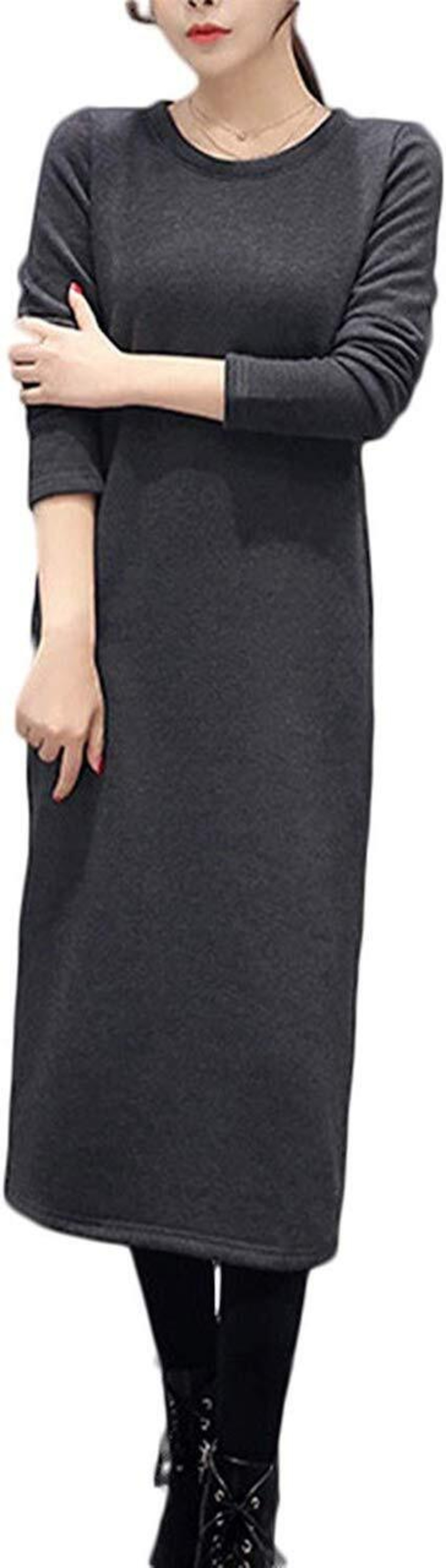 【数量限定】[Argento Appa] [アルジェント アパ] ワンピース ルームワンピ 裏起毛 秋 冬 春 暖かい 防寒着 インナーワンピ ミモレ丈 長袖 ブラック グレー M〜2XL | BOSSO