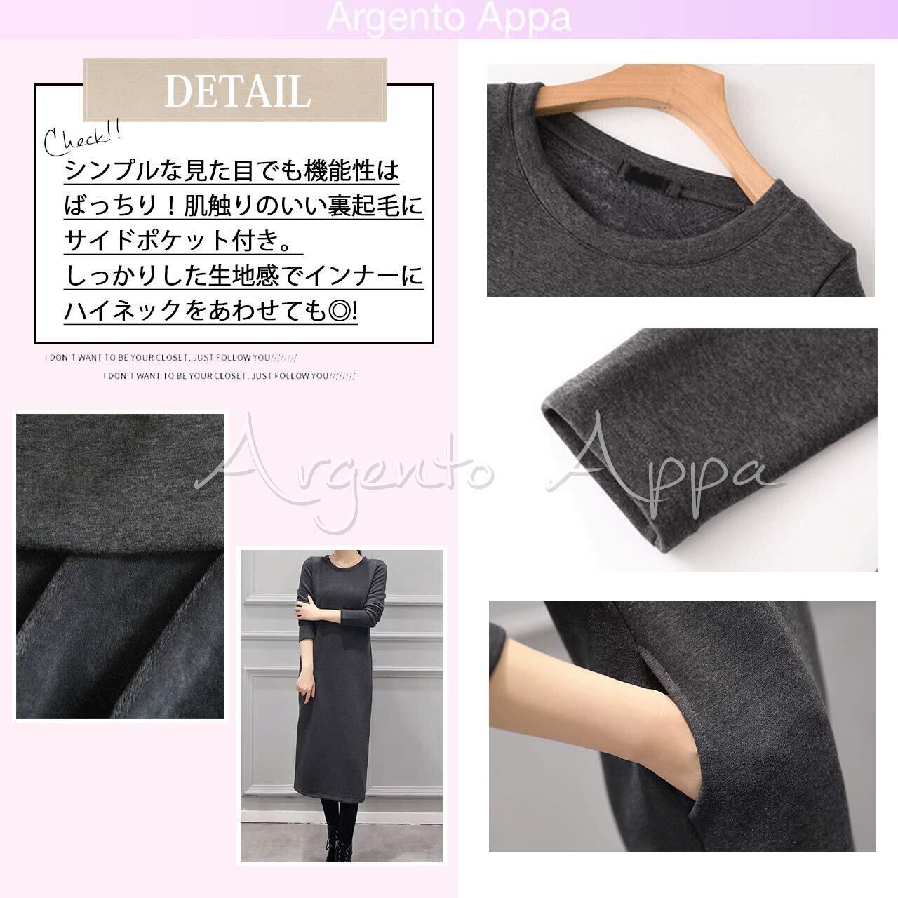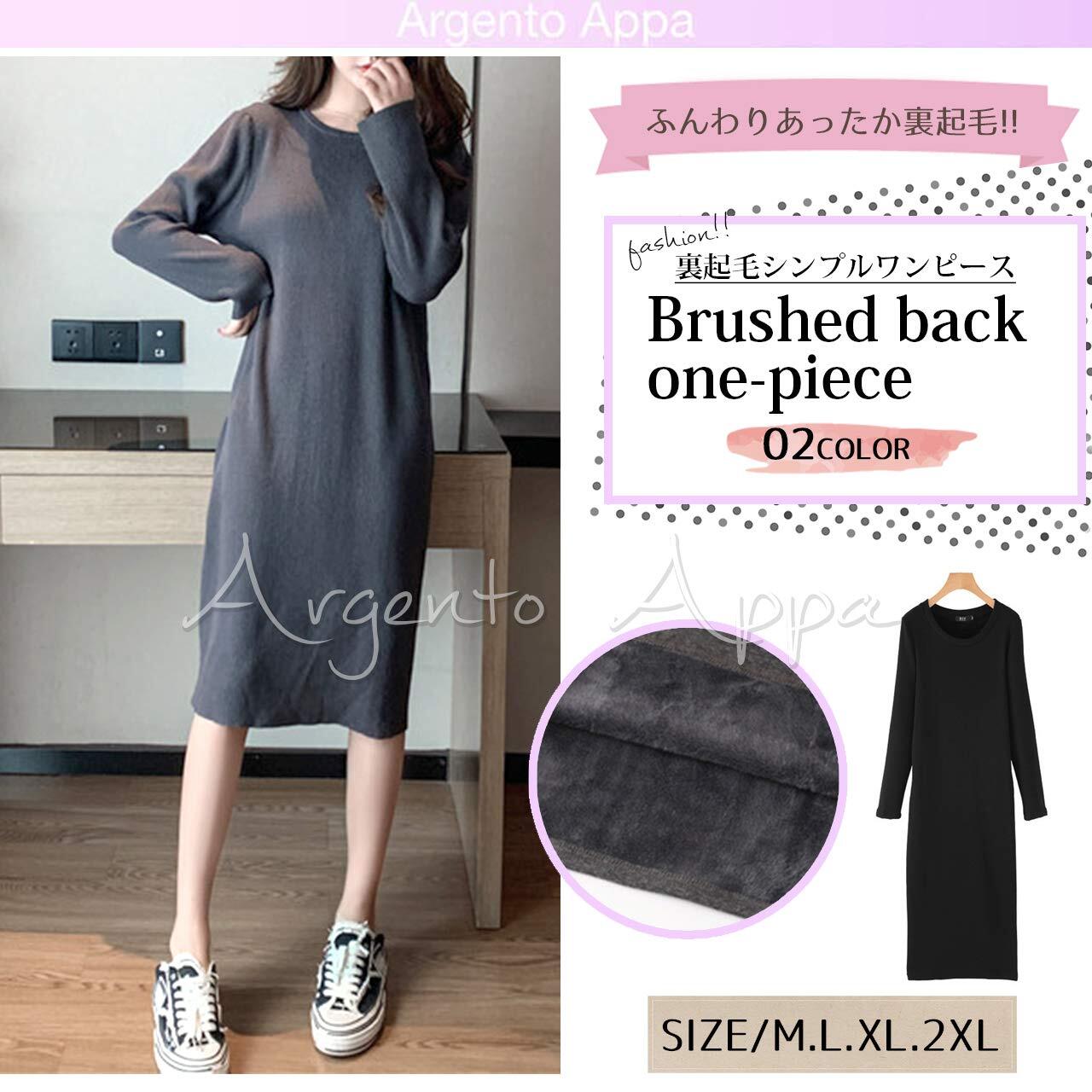 [Argento Appa] [アルジェント アパ] ワンピース ルームワンピ 裏起毛 秋 冬 春 暖かい 防寒着 インナーワンピ ミモレ丈 長袖 ブラック グレー M〜2XL