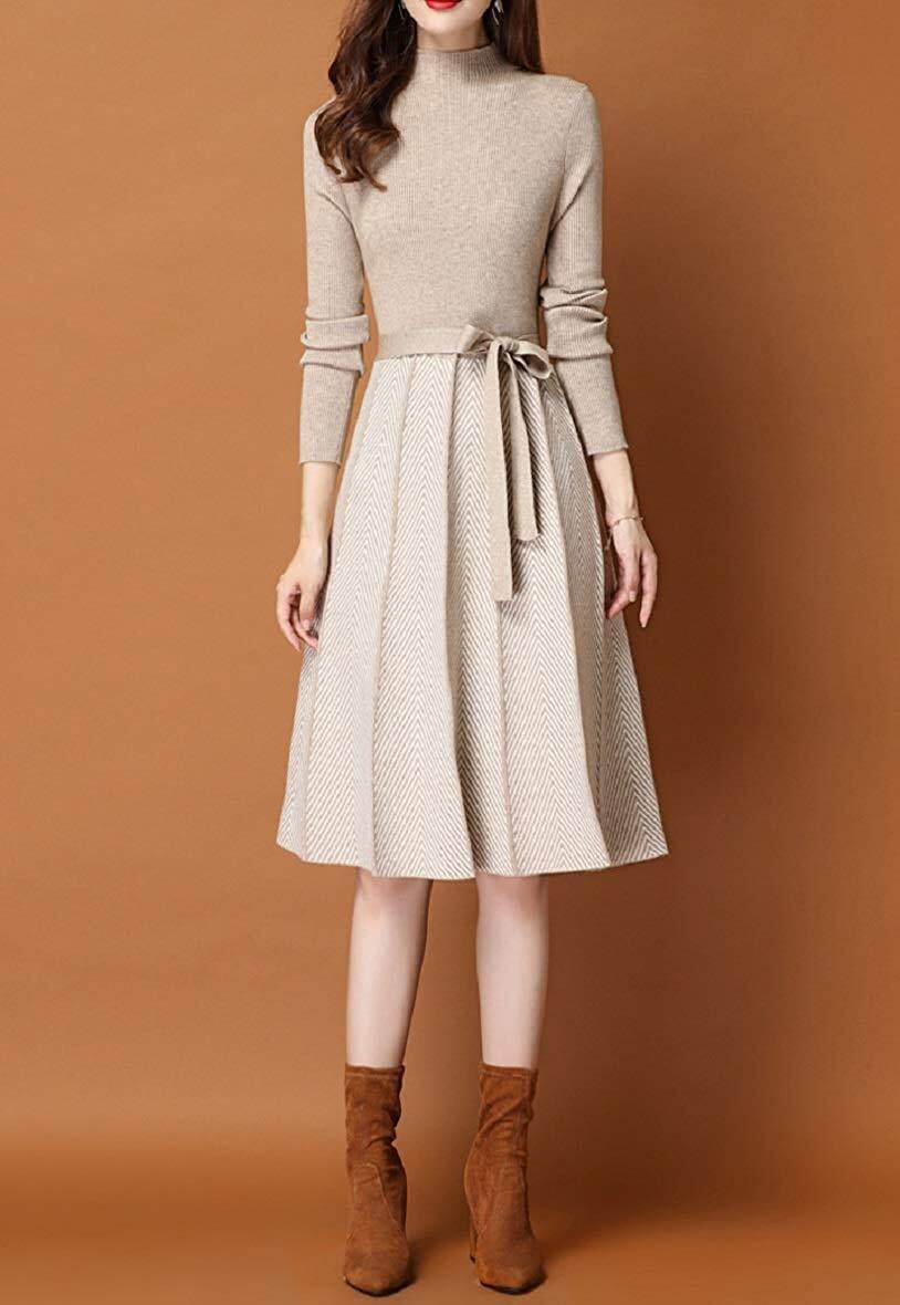 [ロドリーミシェ] 膝丈 カジュアル フンワリ プリーツ スカート ワンピース 女の子 秋 冬 春 ファッション冬スカート ミディ丈 冬レディーススカート ひざ丈 レディースプリーツスカート レディース 秋冬 フレア ニット アッタカ ハイウエストプリーツスカート 冬用 ひざ丈かわいい 女性スカート冬 大人 可愛い デート服スカート 膝丈冬 フレアスカート 冬物 No4 ベージュ L