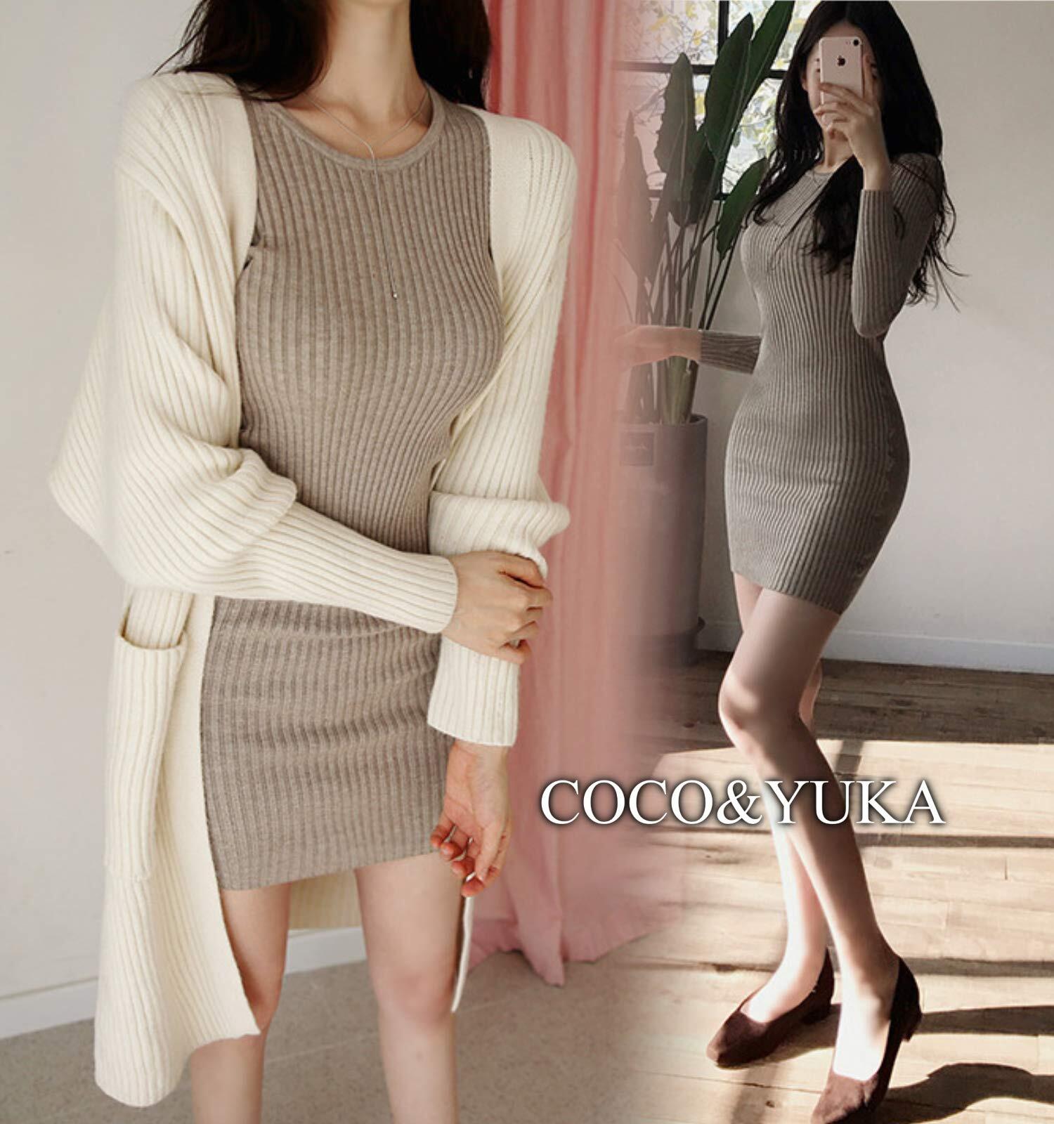 [ココアンドユカ] リブ ニット タイト ミニ ワンピース シンプル レディース おしゃれ ルームウェア かわいい セクシー