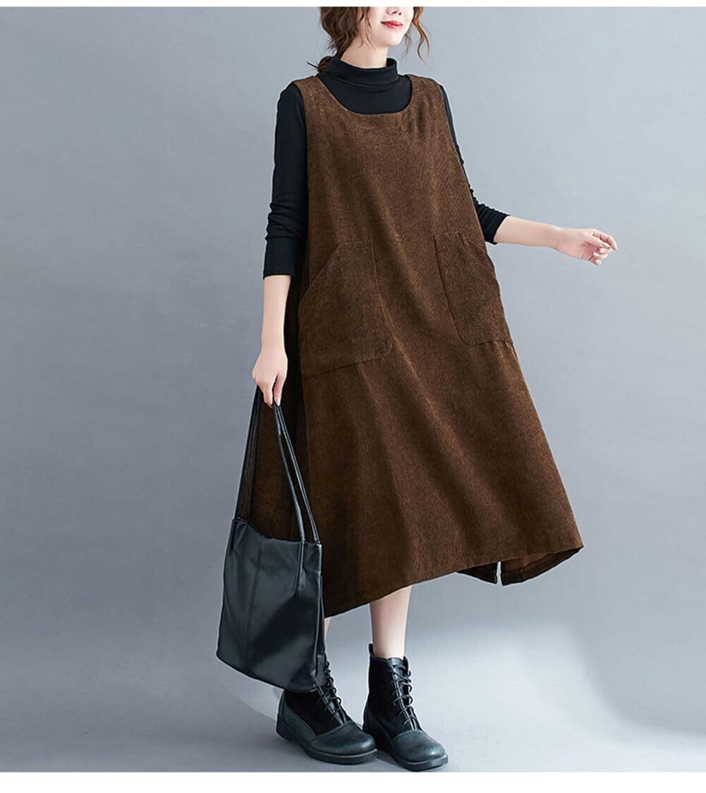 【人気商品】[Ksila] ワンピース レディース 秋冬 コーデュロイ サロペット スカート オーバーオール ジャンパースカート ロング丈 体型カバー 無地 オールインワン 大きいサイズ(2XLコーヒー) | BOSSO